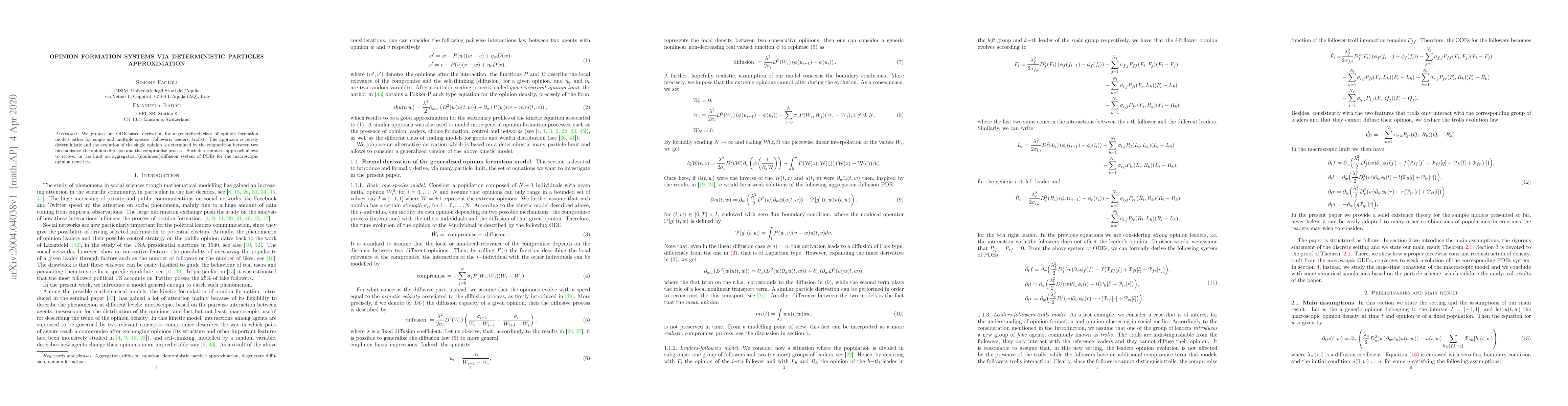 We propose an ODE-based derivation for a generalized class of opinion formation models either for single and multiple species (followers, leaders, trolls). The approach is purely deterministic and the evolution of the single opinion is determined by the competition between two mechanisms: the opinion diffusion and the compromise process. Such deterministic approach allows to recover in the limit an aggregation/(nonlinear)diffusion system of PDEs for the macroscopic opinion densities.