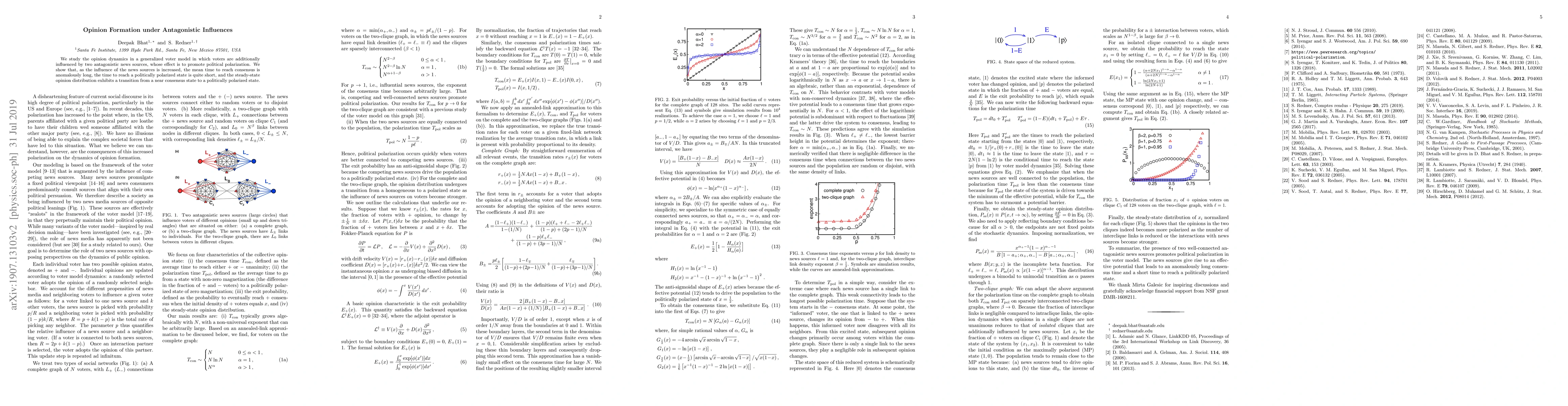 We study the opinion dynamics in a generalized voter model in which voters are additionally influenced by two antagonistic news sources, whose effect is to promote political polarization. We show that, as the influence of the news sources is increased, the mean time to reach consensus is anomalously long, the time to reach a politically polarized state is quite short, and the steady-state opinion distribution exhibits a transition from a near consensus state to a politically polarized state.