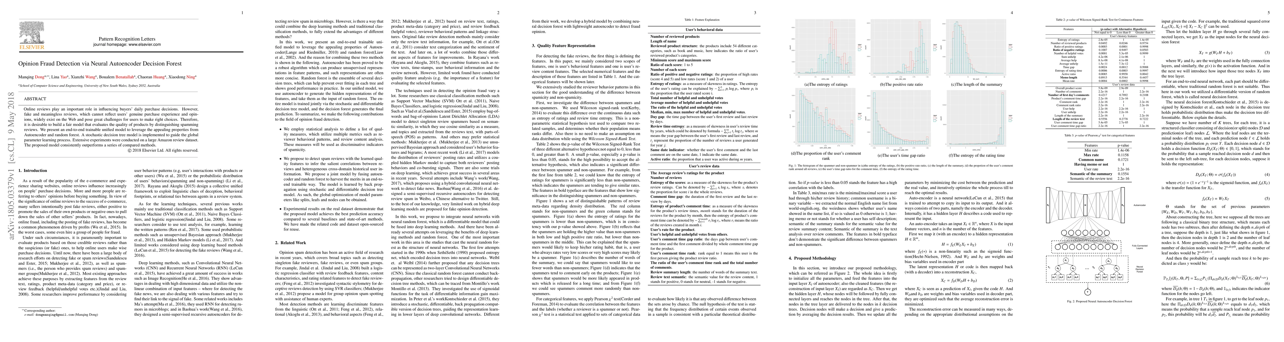 This paper proposes a neural autoencoder decision forest model to detect opinion fraud in online reviews, effectively distinguishing spam reviews from genuine ones. Experiments on an Amazon review dataset show that the model outperforms existing methods, ensuring more reliable product evaluations.