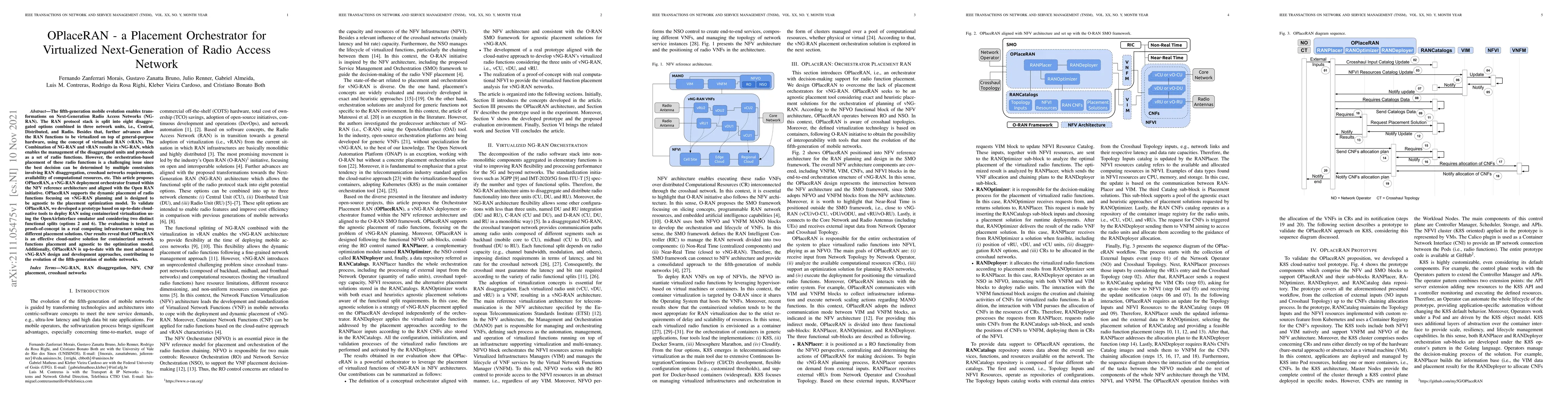 OPlaceRAN is a deployment orchestrator for virtualized Next-Generation Radio Access Networks (vNG-RAN), designed to dynamically place radio functions while considering various constraints. The prototype demonstrates effective containerized network functions placement, supporting the evolution of fifth-generation mobile networks.