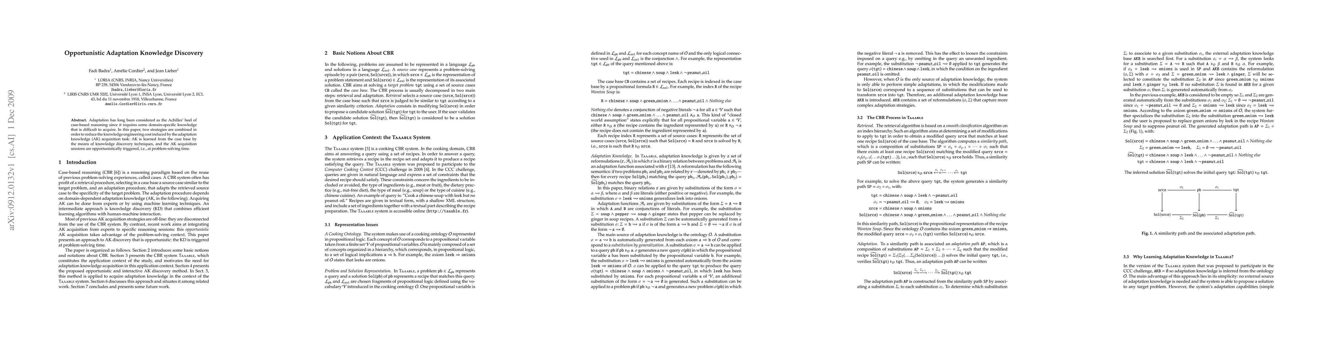 This paper explores reducing adaptation knowledge engineering costs in case-based reasoning by discovering adaptation knowledge from the case base using knowledge discovery techniques and triggering adaptation knowledge acquisition opportunistically during problem-solving.