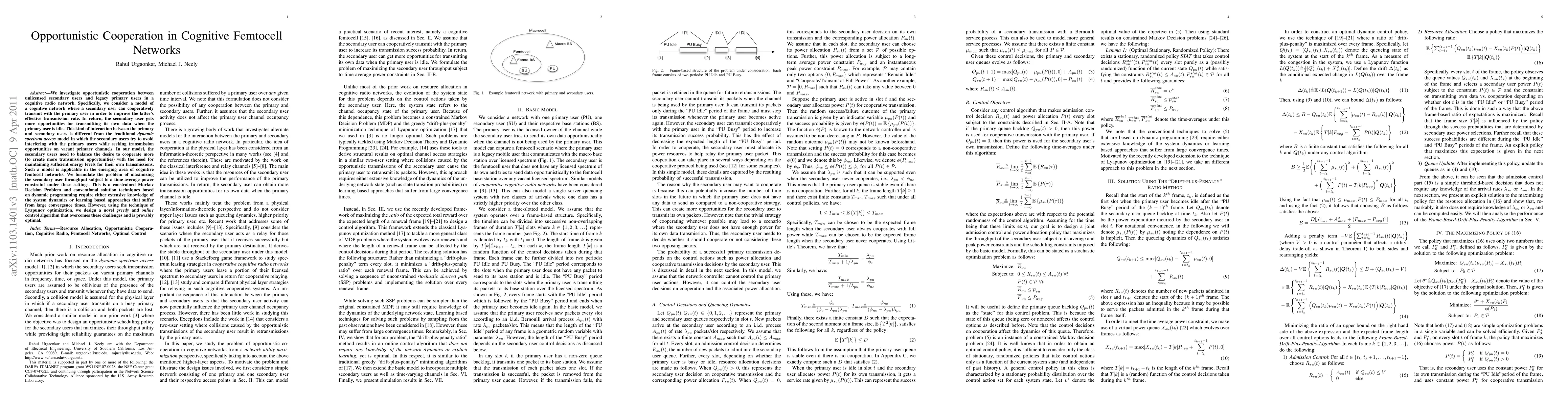 We investigate opportunistic cooperation between unlicensed secondary users and legacy primary users in a cognitive radio network. Specifically, we consider a model of a cognitive network where a secondary user can cooperatively transmit with the primary user in order to improve the latter's effective transmission rate. In return, the secondary user gets more opportunities for transmitting its own data when the primary user is idle. This kind of interaction between the primary and secondary users is different from the traditional dynamic spectrum access model in which the secondary users try to avoid interfering with the primary users while seeking transmission opportunities on vacant primary channels. In our model, the secondary users need to balance the desire to cooperate more (to create more transmission opportunities) with the need for maintaining sufficient energy levels for their own transmissions. Such a model is applicable in the emerging area of cognitive femtocell networks. We formulate the problem of maximizing the secondary user throughput subject to a time average power constraint under these settings. This is a constrained Markov Decision Problem and conventional solution techniques based on dynamic programming require either extensive knowledge of the system dynamics or learning based approaches that suffer from large convergence times. However, using the technique of Lyapunov optimization, we design a novel greedy and online control algorithm that overcomes these challenges and is provably optimal.