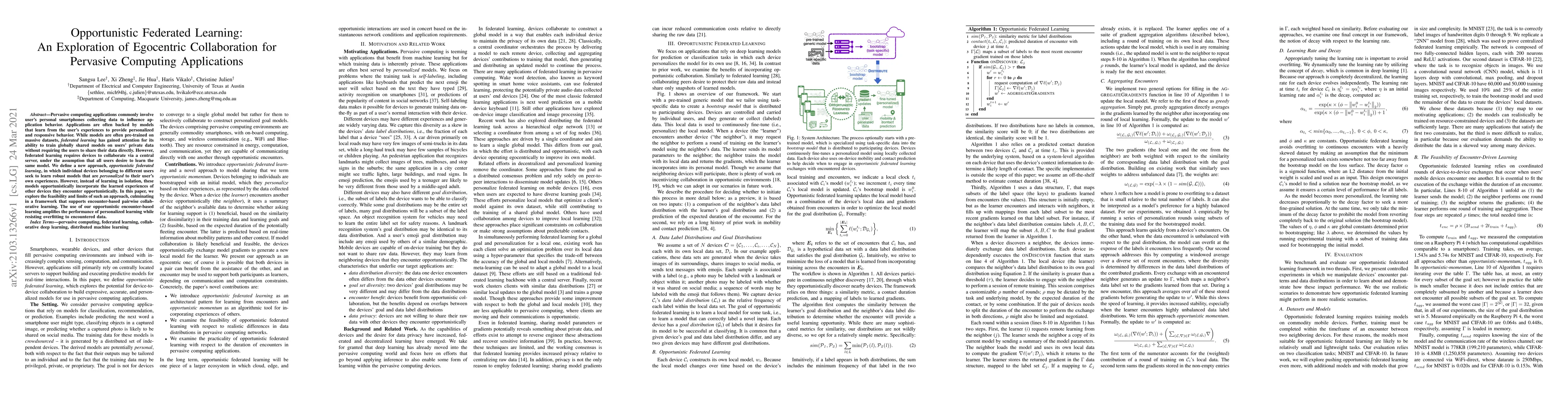 Pervasive computing applications commonly involve user's personal smartphones collecting data to influence application behavior. Applications are often backed by models that learn from the user's experiences to provide personalized and responsive behavior. While models are often pre-trained on massive datasets, federated learning has gained attention for its ability to train globally shared models on users' private data without requiring the users to share their data directly. However, federated learning requires devices to collaborate via a central server, under the assumption that all users desire to learn the same model. We define a new approach, opportunistic federated learning, in which individual devices belonging to different users seek to learn robust models that are personalized to their user's own experiences. However, instead of learning in isolation, these models opportunistically incorporate the learned experiences of other devices they encounter opportunistically. In this paper, we explore the feasibility and limits of such an approach, culminating in a framework that supports encounter-based pairwise collaborative learning. The use of our opportunistic encounter-based learning amplifies the performance of personalized learning while resisting overfitting to encountered data.