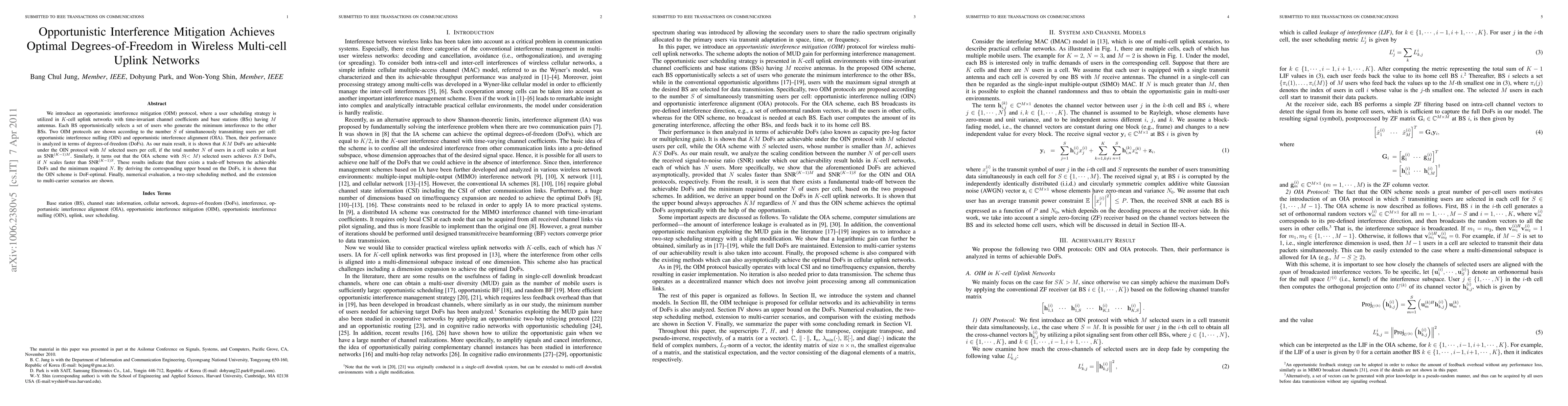 We introduce an opportunistic interference mitigation (OIM) protocol, where a