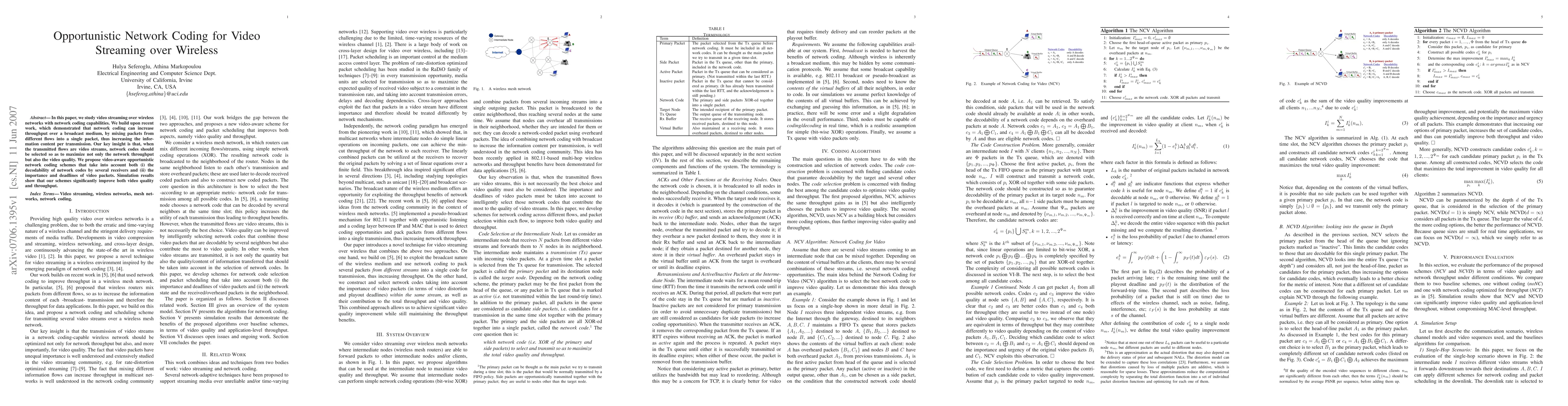 This paper proposes video-aware opportunistic network coding schemes for wireless video streaming, aiming to maximize both throughput and video quality by considering packet decodability and packet importance. Simulation results demonstrate significant improvements in both metrics.