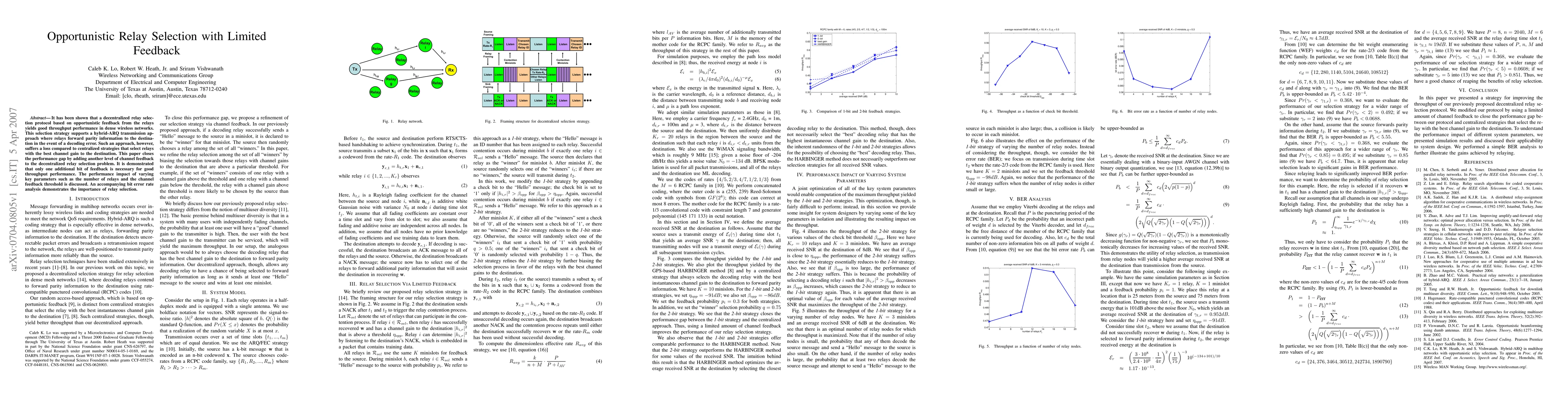 It has been shown that a decentralized relay selection protocol based on opportunistic feedback from the relays yields good throughput performance in dense wireless networks. This selection strategy supports a hybrid-ARQ transmission approach where relays forward parity information to the destination in the event of a decoding error. Such an approach, however, suffers a loss compared to centralized strategies that select relays with the best channel gain to the destination. This paper closes the performance gap by adding another level of channel feedback to the decentralized relay selection problem. It is demonstrated that only one additional bit of feedback is necessary for good throughput performance. The performance impact of varying key parameters such as the number of relays and the channel feedback threshold is discussed. An accompanying bit error rate analysis demonstrates the importance of relay selection.