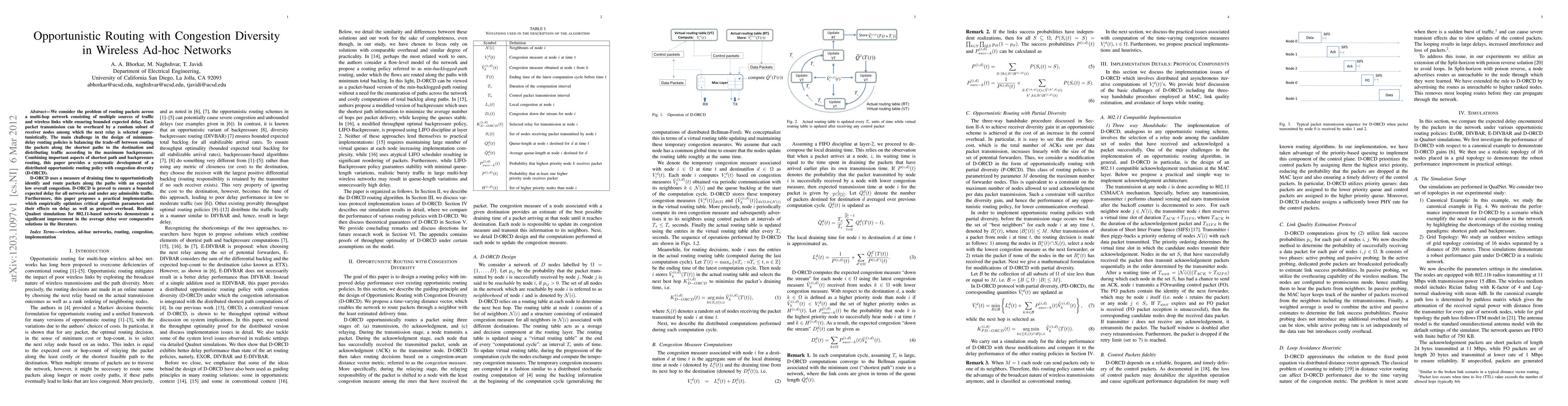 This paper develops a distributed opportunistic routing policy called {D-ORCD} to balance shortest path and backpressure routing in wireless ad-hoc networks, ensuring bounded expected delay and low congestion. Simulations show significant delay improvements over comparative solutions.
