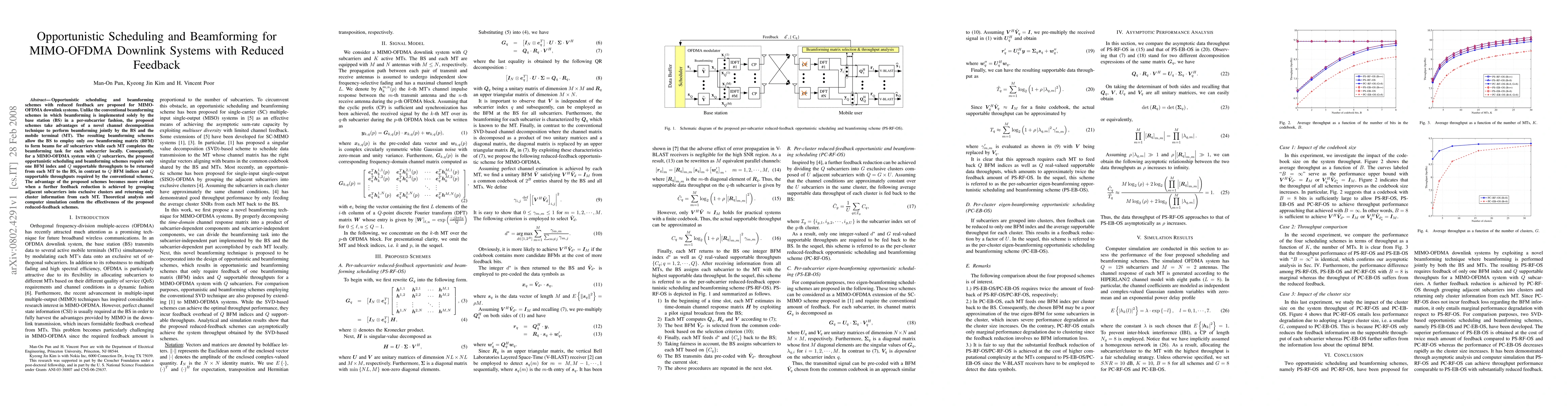 The paper proposes opportunistic scheduling and beamforming schemes for MIMO-OFDMA downlink systems that significantly reduce feedback requirements by jointly performing beamforming between the base station and mobile terminals. This approach requires only one beamforming matrix index and subcarrier throughputs, rather than per-subcarrier indices and throughputs, enhancing efficiency.