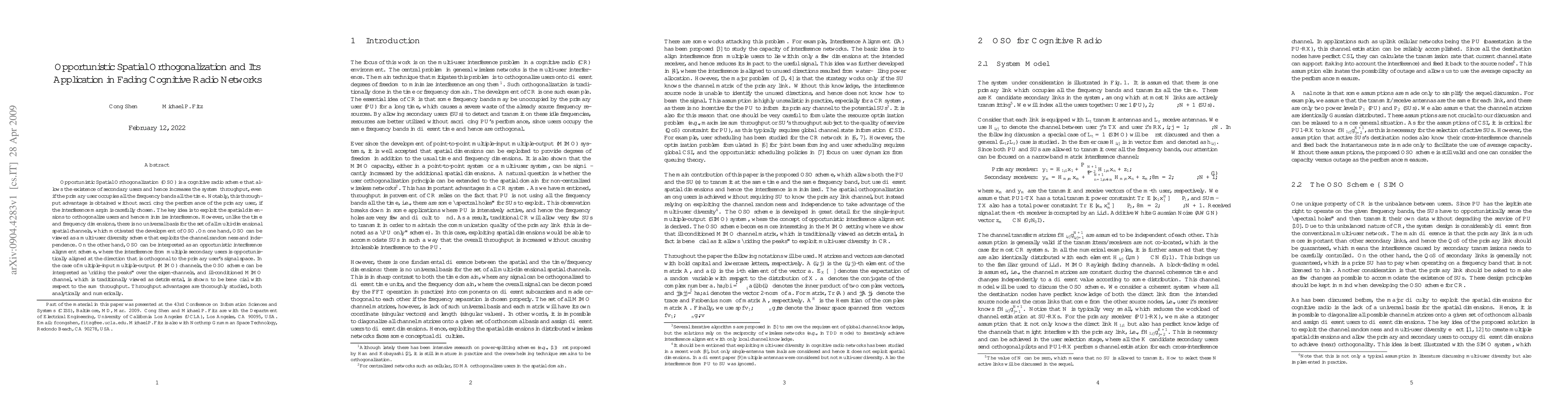 Opportunistic Spatial Orthogonalization (OSO) enhances cognitive radio networks by allowing secondary users to increase system throughput without affecting primary users, leveraging spatial dimensions to minimize interference. OSO exploits multi-user diversity and opportunistic interference alignment, particularly beneficial in MIMO channels, to achieve higher throughput even in ill-conditioned conditions.