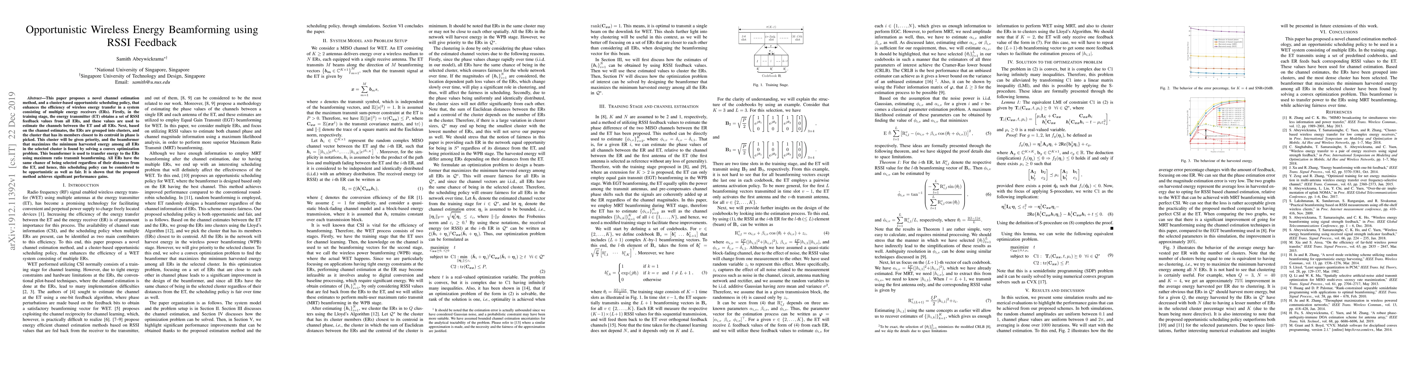 This paper introduces a novel method for wireless energy transfer using RSSI feedback to estimate channels and a cluster-based scheduling policy that maximizes energy efficiency and fairness among multiple energy receivers. The proposed approach achieves significant performance gains over traditional methods.