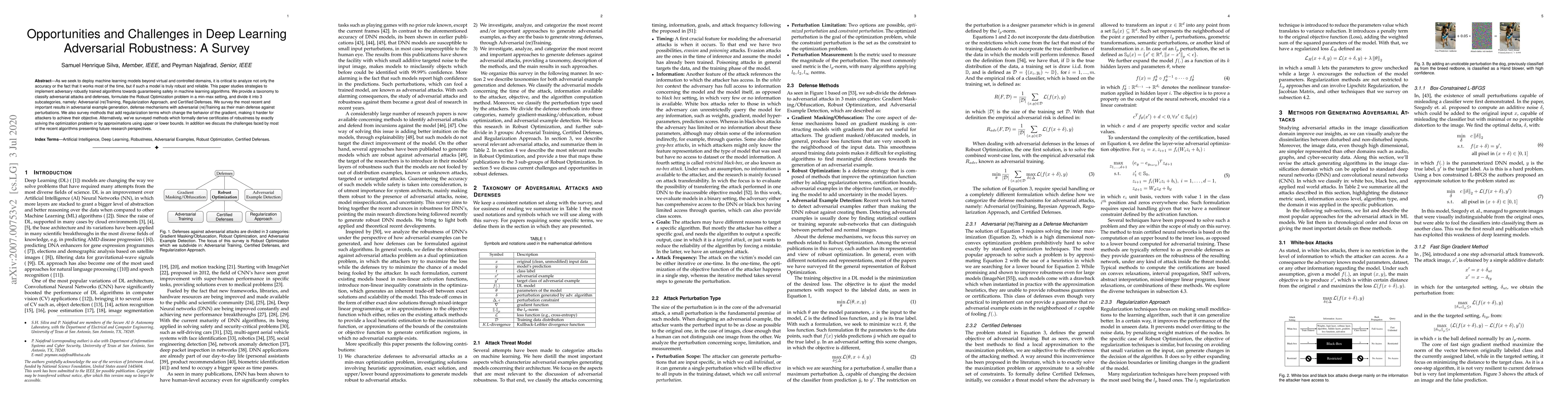 As we seek to deploy machine learning models beyond virtual and controlled domains, it is critical to analyze not only the accuracy or the fact that it works most of the time, but if such a model is truly robust and reliable. This paper studies strategies to implement adversary robustly trained algorithms towards guaranteeing safety in machine learning algorithms. We provide a taxonomy to classify adversarial attacks and defenses, formulate the Robust Optimization problem in a min-max setting and divide it into 3 subcategories, namely: Adversarial (re)Training, Regularization Approach, and Certified Defenses. We survey the most recent and important results in adversarial example generation, defense mechanisms with adversarial (re)Training as their main defense against perturbations. We also survey mothods that add regularization terms that change the behavior of the gradient, making it harder for attackers to achieve their objective. Alternatively, we've surveyed methods which formally derive certificates of robustness by exactly solving the optimization problem or by approximations using upper or lower bounds. In addition, we discuss the challenges faced by most of the recent algorithms presenting future research perspectives.