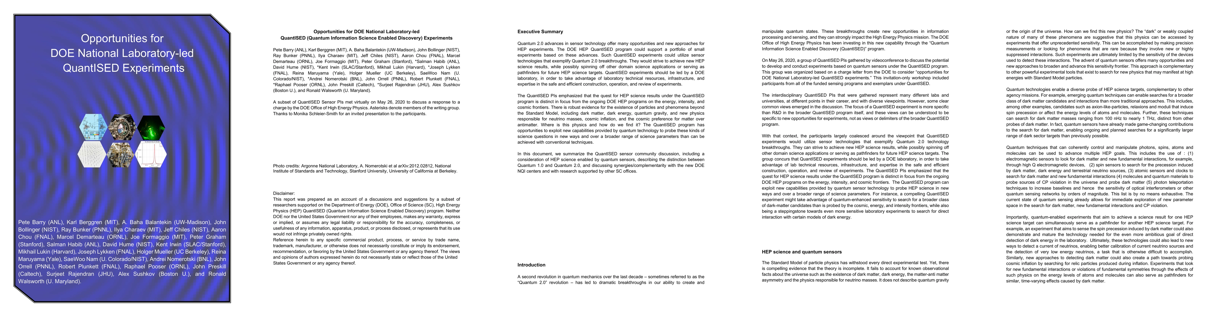 A subset of QuantISED Sensor PIs met virtually on May 26, 2020 to discuss a response to a charge by the DOE Office of High Energy Physics. In this document, we summarize the QuantISED sensor community discussion, including a consideration of HEP science enabled by quantum sensors, describing the distinction between Quantum 1.0 and Quantum 2.0, and discussing synergies/complementarity with the new DOE NQI centers and with research supported by other SC offices. Quantum 2.0 advances in sensor technology offer many opportunities and new approaches for HEP experiments. The DOE HEP QuantISED program could support a portfolio of small experiments based on these advances. QuantISED experiments could use sensor technologies that exemplify Quantum 2.0 breakthroughs. They would strive to achieve new HEP science results, while possibly spinning off other domain science applications or serving as pathfinders for future HEP science targets. QuantISED experiments should be led by a DOE laboratory, to take advantage of laboratory technical resources, infrastructure, and expertise in the safe and efficient construction, operation, and review of experiments. The QuantISED PIs emphasized that the quest for HEP science results under the QuantISED program is distinct from the ongoing DOE HEP programs on the energy, intensity, and cosmic frontiers. There is robust evidence for the existence of particles and phenomena beyond the Standard Model, including dark matter, dark energy, quantum gravity, and new physics responsible for neutrino masses, cosmic inflation, and the cosmic preference for matter over antimatter. Where is this physics and how do we find it? The QuantISED program can exploit new capabilities provided by quantum technology to probe these kinds of science questions in new ways and over a broader range of science parameters than can be achieved with conventional techniques.
