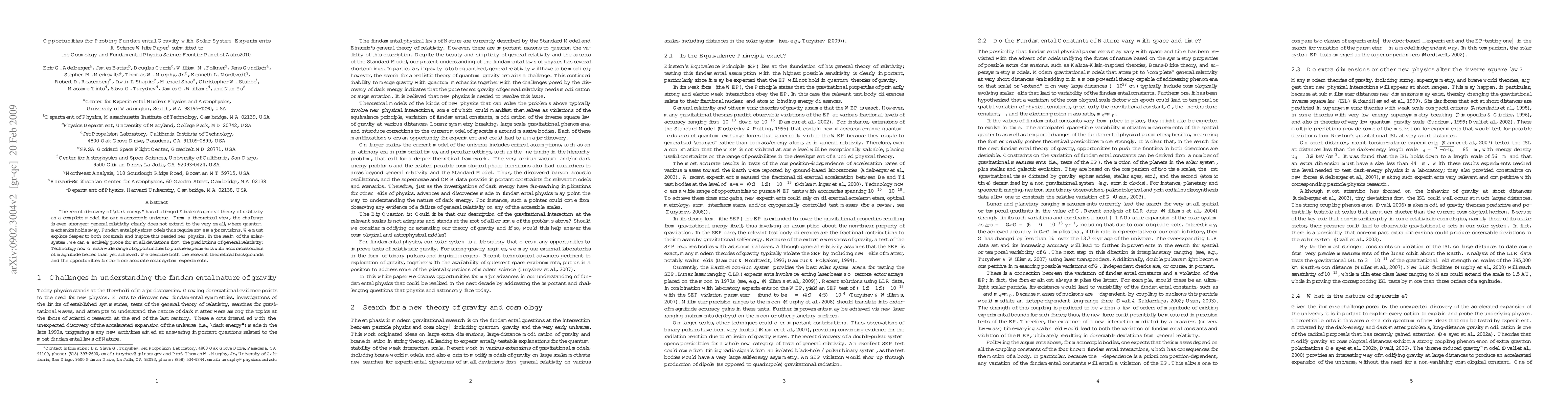 The recent discovery of "dark energy" has challenged Einstein's general theory of relativity as a complete model for our macroscopic universe. From a theoretical view, the challenge is even stronger: general relativity clearly does not extend to the very small, where quantum mechanics holds sway. Fundamental physics models thus require some major revisions. We must explore deeper to both constrain and inspire this needed new physics. In the realm of the solar-system, we can effectively probe for small deviations from the predictions of general relativity: Technology now offers a wide range of opportunities to pursue experiments with accuracies orders of magnitude better than yet achieved. We describe both the relevant theoretical backgrounds and the opportunities for far more accurate solar system experiments.