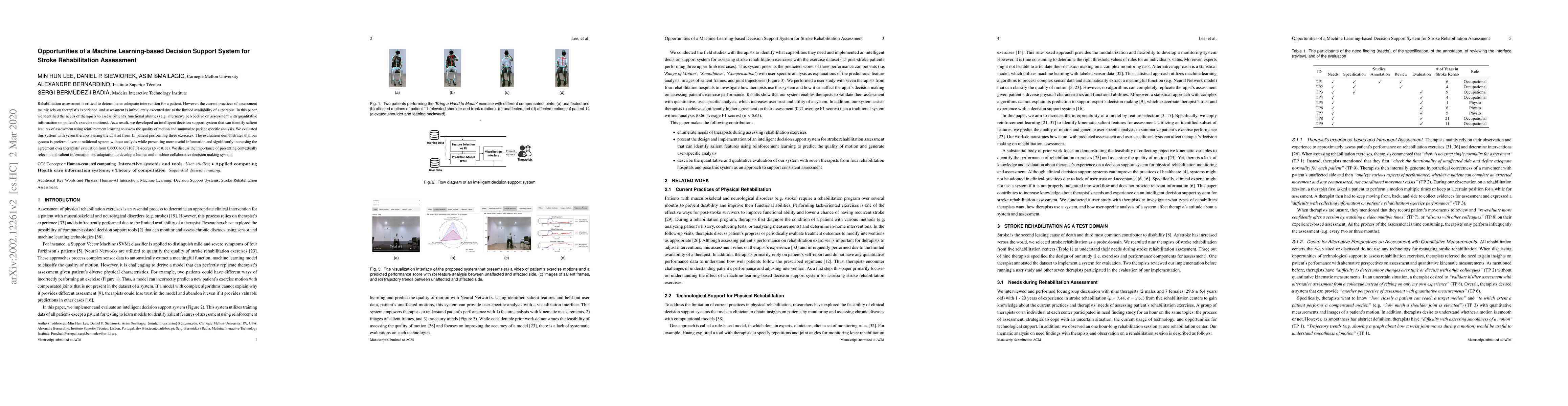 This paper develops a machine learning-based decision support system for stroke rehabilitation assessment, aiming to provide quantitative insights into patient exercise motions. The system, evaluated with therapists, shows improved agreement and preference over traditional methods, highlighting the potential for enhanced collaborative decision-making in rehabilitation.