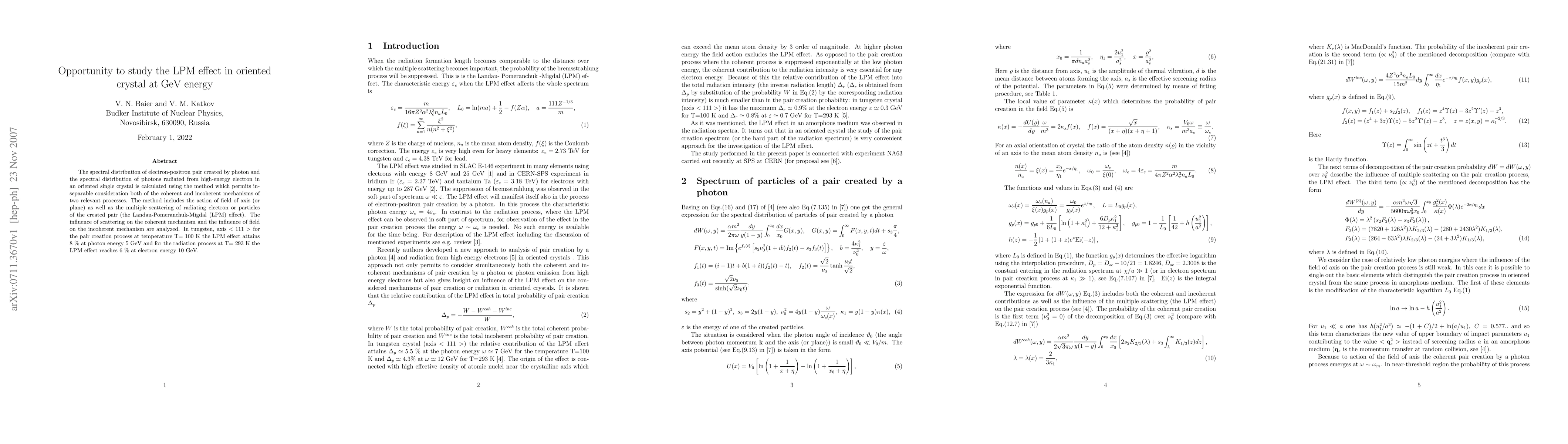 This paper investigates the Landau-Pomeranchuk-Migdal (LPM) effect on electron-positron pair creation and photon radiation in oriented tungsten crystals using a method that considers both coherent and incoherent mechanisms. The LPM effect is found to be 8% at 5 GeV photon energy for pair creation at 100 K and 6% at 10 GeV electron energy for radiation at room temperature.