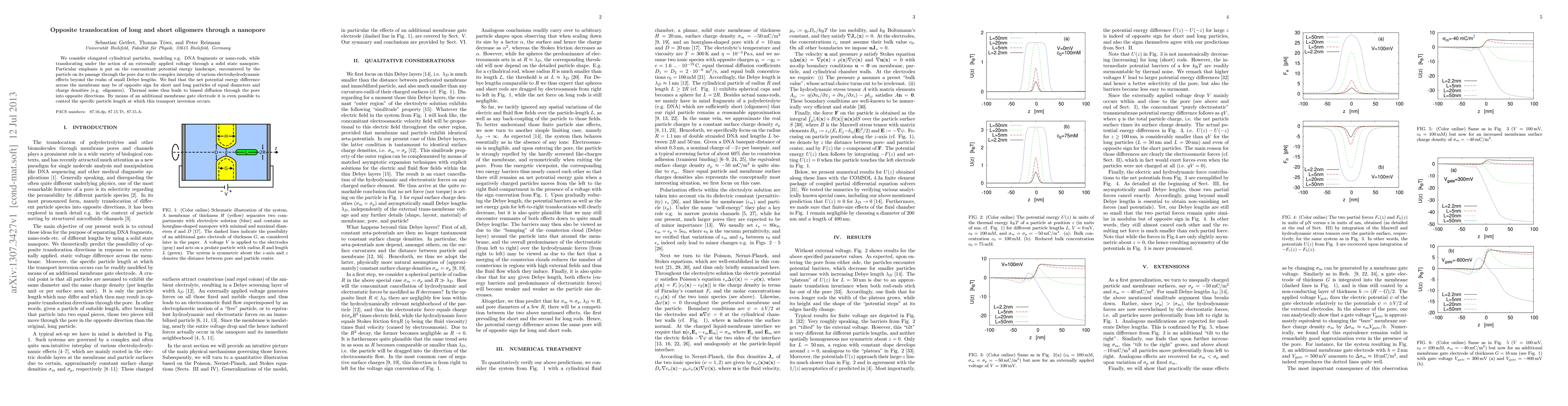 We consider elongated cylindrical particles, modeling e.g. DNA fragments or nano-rods, while translocating under the action of an externally applied voltage through a solid state nanopore. Particular emphasis is put on the concomitant potential energy landscape, encountered by the particle on its passage through the pore due to the complex interplay of various electrohydrodynamic effects beyond the realm of small Debye lengths. We find that the net potential energy difference across the membrane may be of opposite sign for short and long particles of equal diameters and charge densities (e.g. oligomers). Thermal noise thus leads to biased diffusion through the pore into opposite directions. By means of an additional membrane gate electrode it is even possible to control the specific particle length at which this transport inversion occurs.