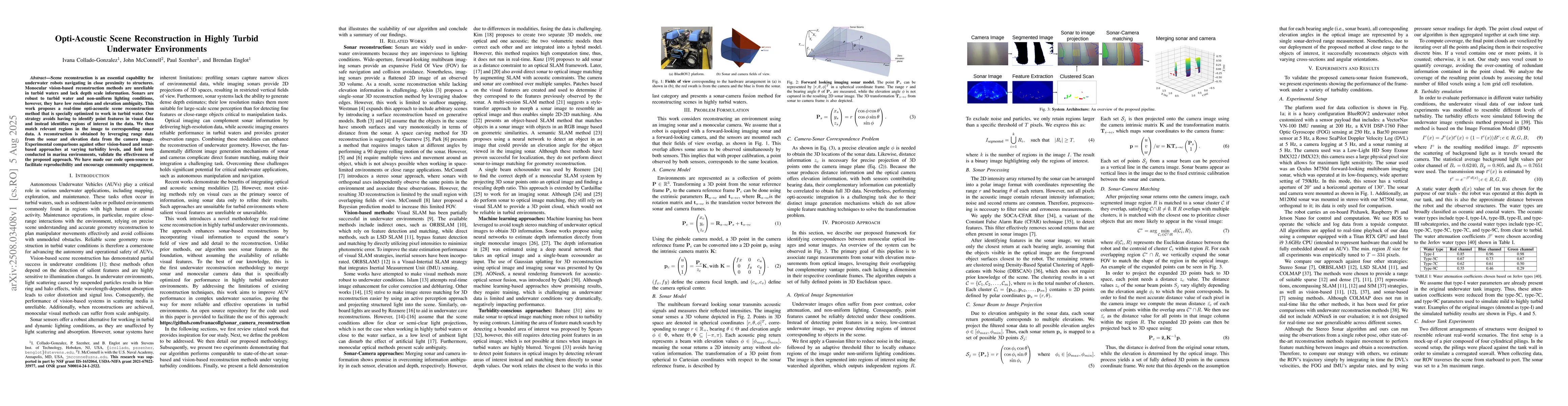 Scene reconstruction is an essential capability for underwater robots navigating in close proximity to structures. Monocular vision-based reconstruction methods are unreliable in turbid waters and lack depth scale information. Sonars are robust to turbid water and non-uniform lighting conditions, however, they have low resolution and elevation ambiguity. This work proposes a real-time opti-acoustic scene reconstruction method that is specially optimized to work in turbid water. Our strategy avoids having to identify point features in visual data and instead identifies regions of interest in the data. We then match relevant regions in the image to corresponding sonar data. A reconstruction is obtained by leveraging range data from the sonar and elevation data from the camera image. Experimental comparisons against other vision-based and sonar-based approaches at varying turbidity levels, and field tests conducted in marina environments, validate the effectiveness of the proposed approach. We have made our code open-source to facilitate reproducibility and encourage community engagement.