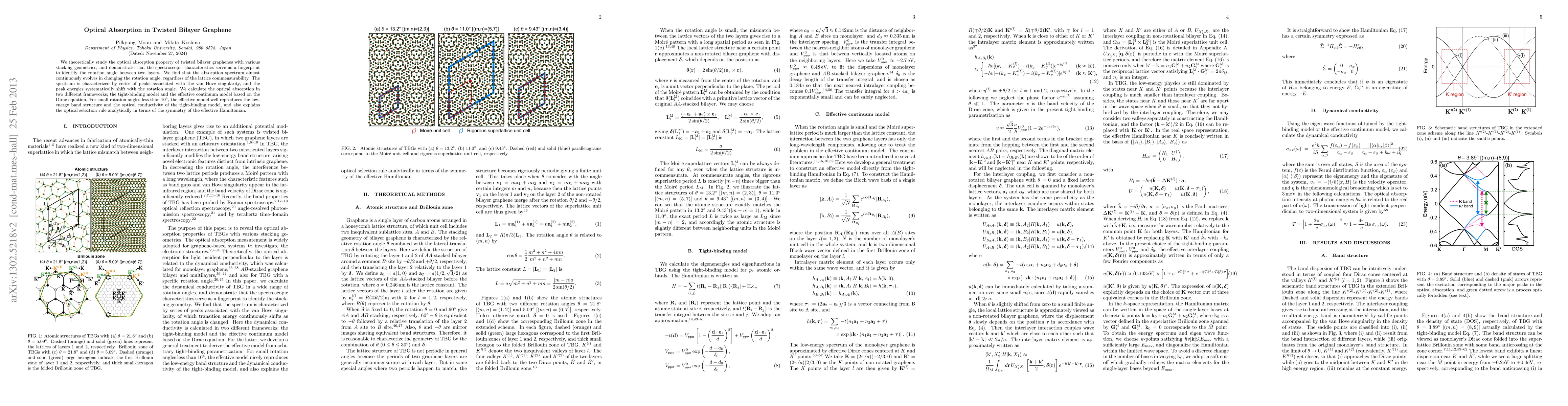 Researchers studied twisted bilayer graphene's optical absorption properties, finding that different rotation angles create distinct spectroscopic characteristics, allowing for identification of the angle between layers.