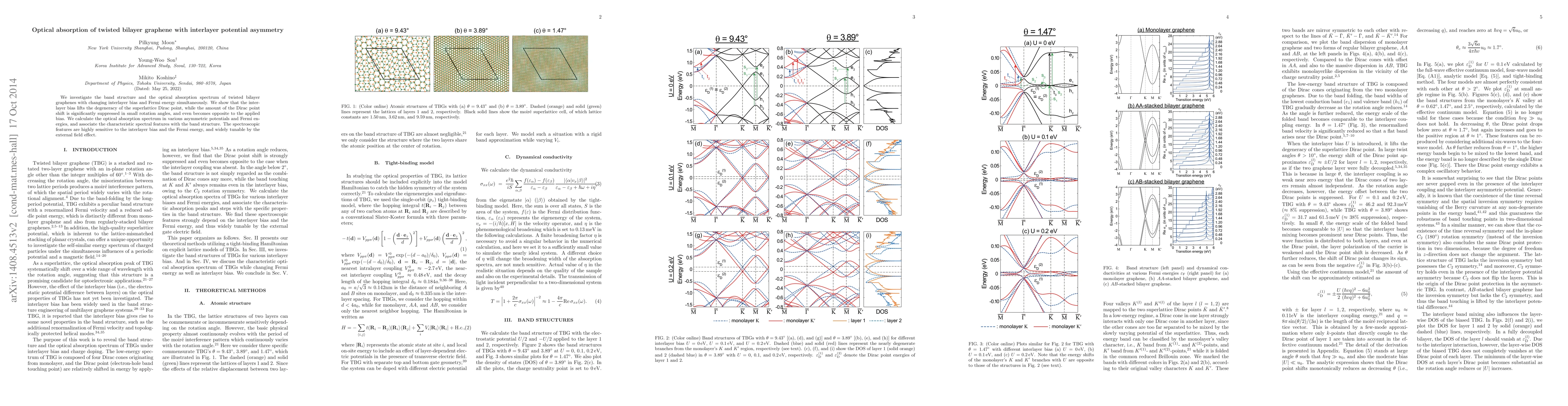 This paper explores the optical absorption and band structure of twisted bilayer graphene under interlayer potential asymmetry, finding that the bias lifts the superlattice Dirac point degeneracy, while the shift is minimal at small twist angles. The study reveals highly tunable spectroscopic features dependent on interlayer bias and Fermi energy.