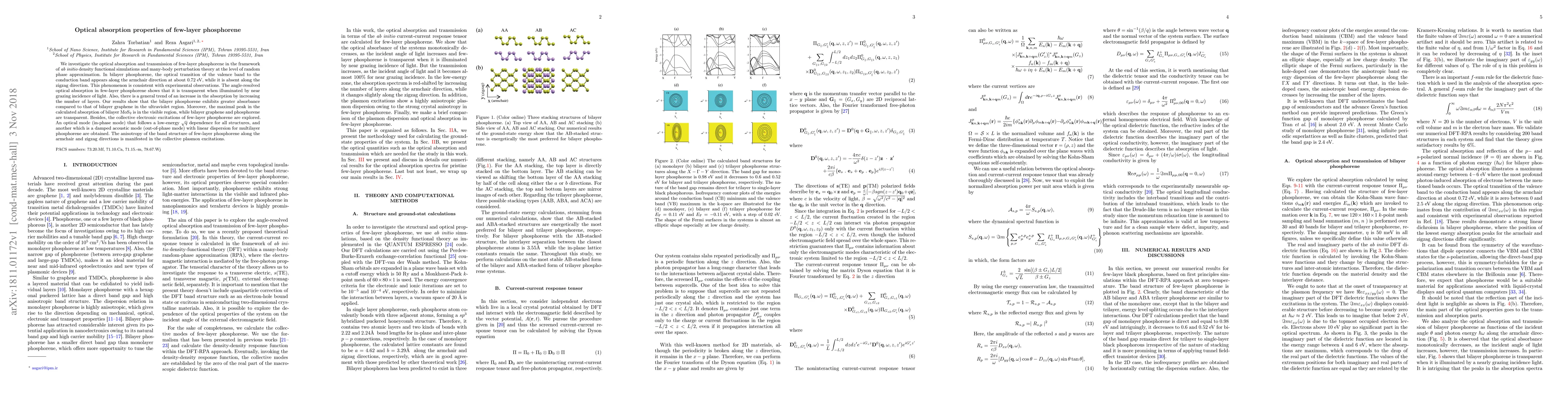 This study uses ab initio simulations to explore the optical absorption properties of few-layer phosphorene, finding that bilayer phosphorene exhibits greater ultraviolet absorbance than bilayer graphene. The material shows anisotropy in optical transitions and transparency at near grazing incidence, with increased absorption as the number of layers grows.