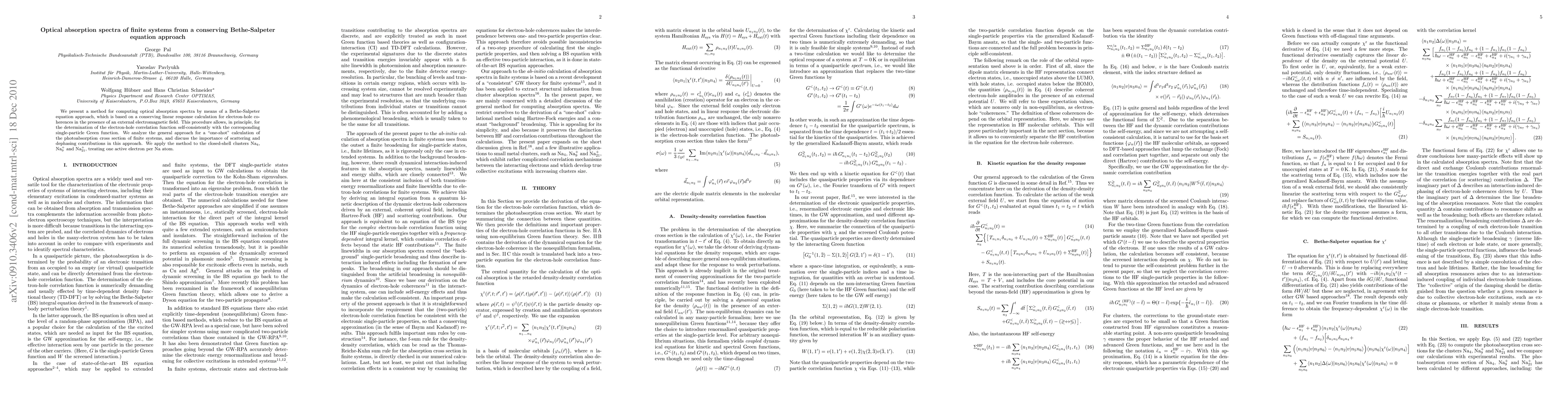 Researchers developed a method to calculate optical absorption spectra for finite systems using the conserving Bethe-Salpeter equation approach, allowing for self-consistent calculations of electron-hole correlations.