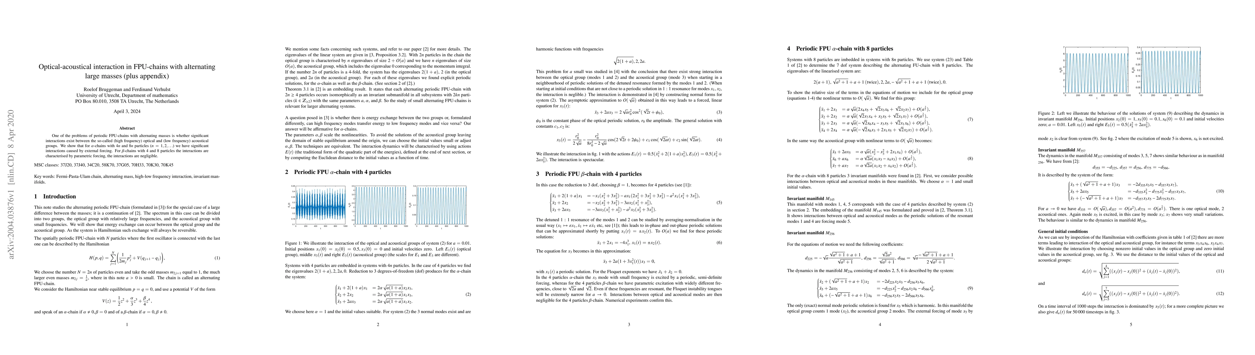 This research paper investigates interactions between optical and acoustical groups in FPU-chains with alternating large masses. It finds significant interactions for certain chain types due to external forcing, while others exhibit negligible interactions.