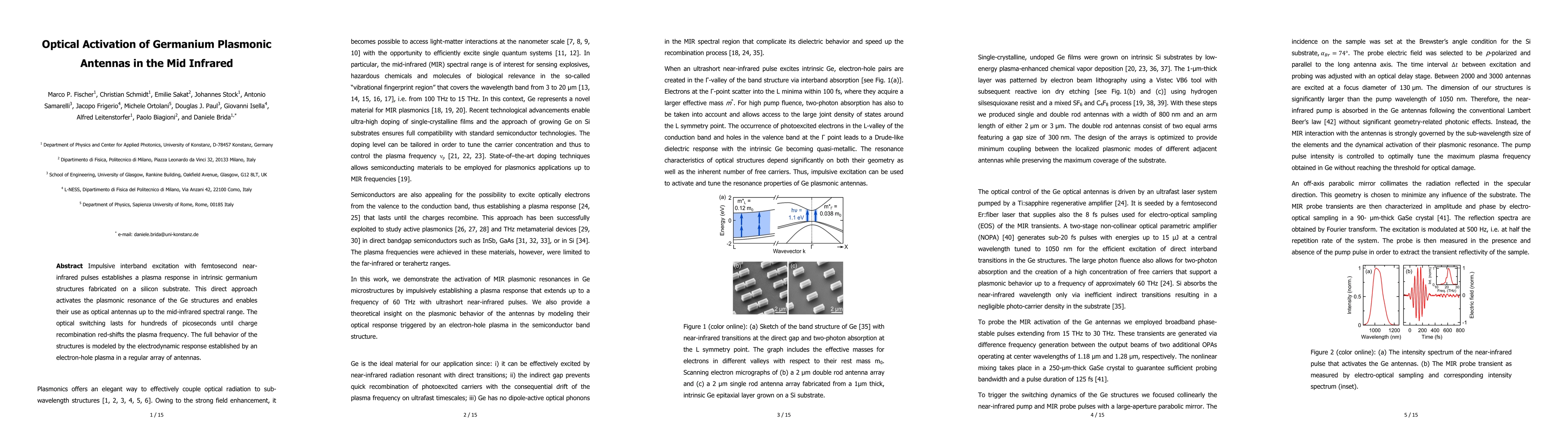 The research demonstrates that femtosecond near-infrared pulses can activate plasmonic resonance in germanium structures on silicon, turning them into mid-infrared optical antennas. This optical switching lasts for hundreds of picoseconds, and the behavior is modeled using electron-hole plasma dynamics.