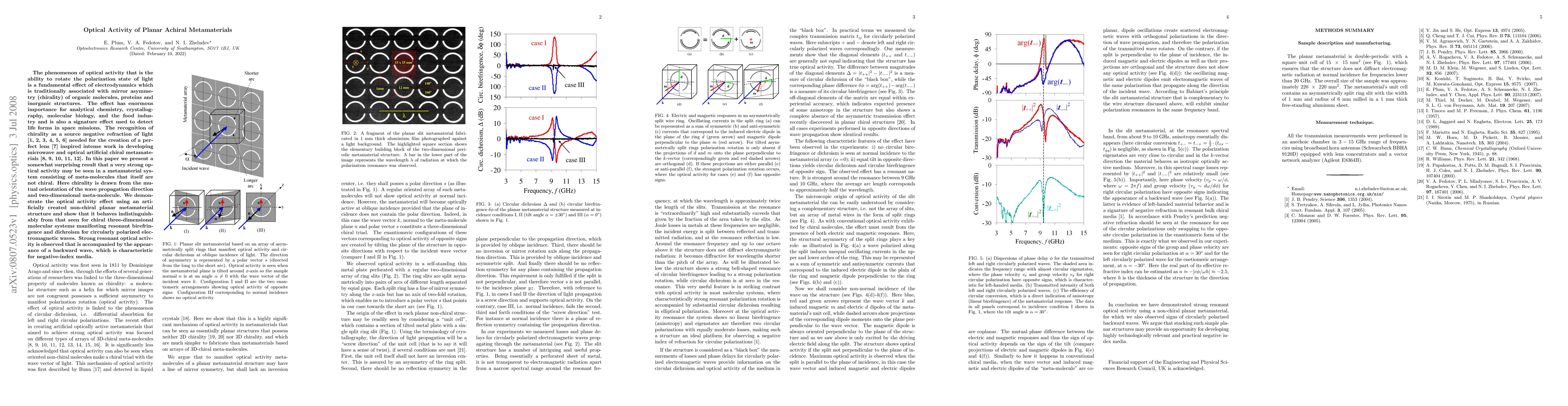 This paper demonstrates that optical activity and circular dichroism, traditionally linked to chirality, can occur in non-chiral planar achiral metamaterials, revealing strong resonant optical activity and the emergence of a backward wave indicative of negative-index media.