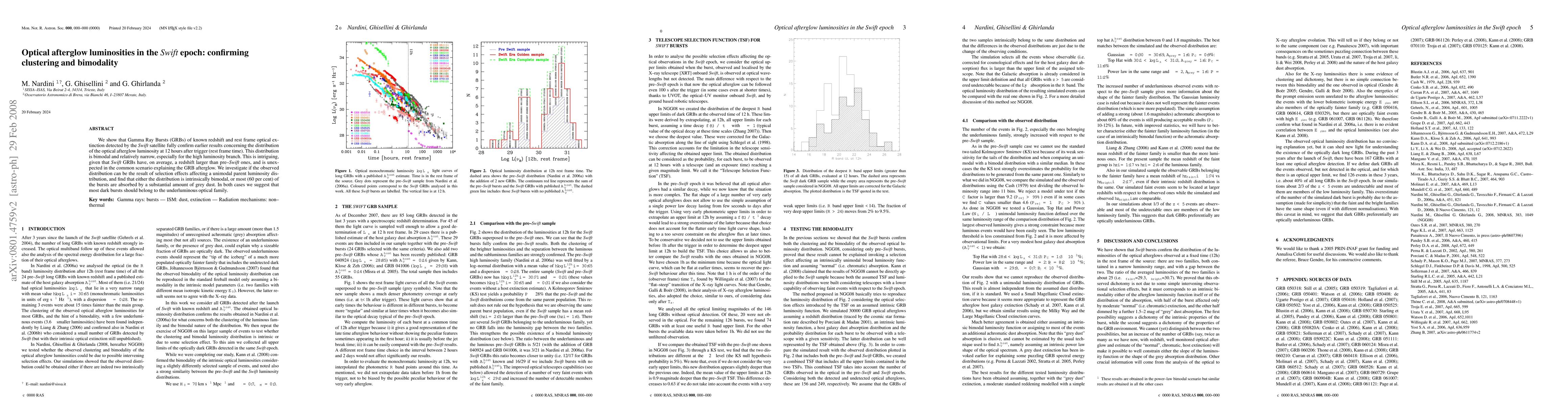 We show that Gamma Ray Bursts (GRBs) of known redshift and rest frame optical extinction detected by the Swift satellite fully confirm earlier results concerning the distribution of the optical afterglow luminosity at 12 hours after trigger (rest frame time). This distribution is bimodal and relatively narrow, especially for the high luminosity branch. This is intriguing, given that Swift GRBs have, on average, a redshift larger than pre-Swift ones, and is unexpected in the common scenario explaining the GRB afterglow. We investigate if the observed distribution can be the result of selection effects affecting a unimodal parent luminosity distribution, and find that either the distribution is intrinsically bimodal, or most (60 per cent) of the bursts are absorbed by a substantial amount of grey dust. In both cases we suggest that most dark bursts should belong to the underluminous optical family.