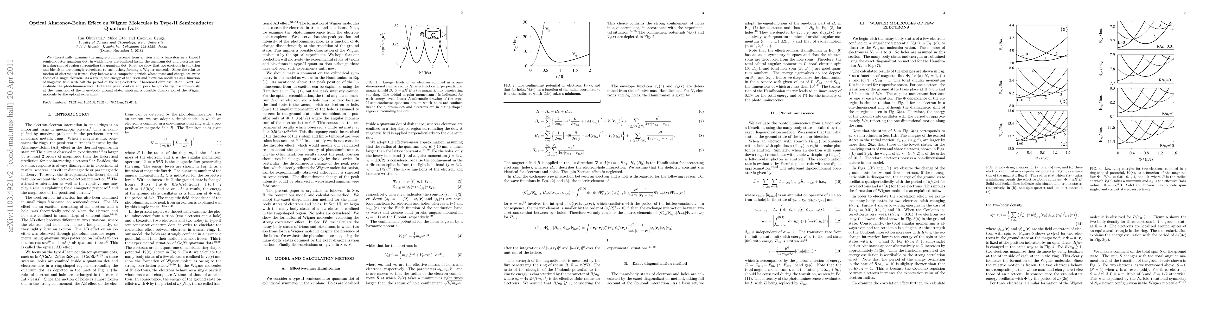 This paper explores the optical Aharonov-Bohm effect in type-II semiconductor quantum dots, demonstrating that electrons form a Wigner molecule with twice the mass and charge of a single electron. The study reveals that the magnetoluminescence of trions and biexcitons oscillates with half the period of a single-electron Aharonov-Bohm oscillation, and suggests that optical experiments could detect these Wigner molecules.