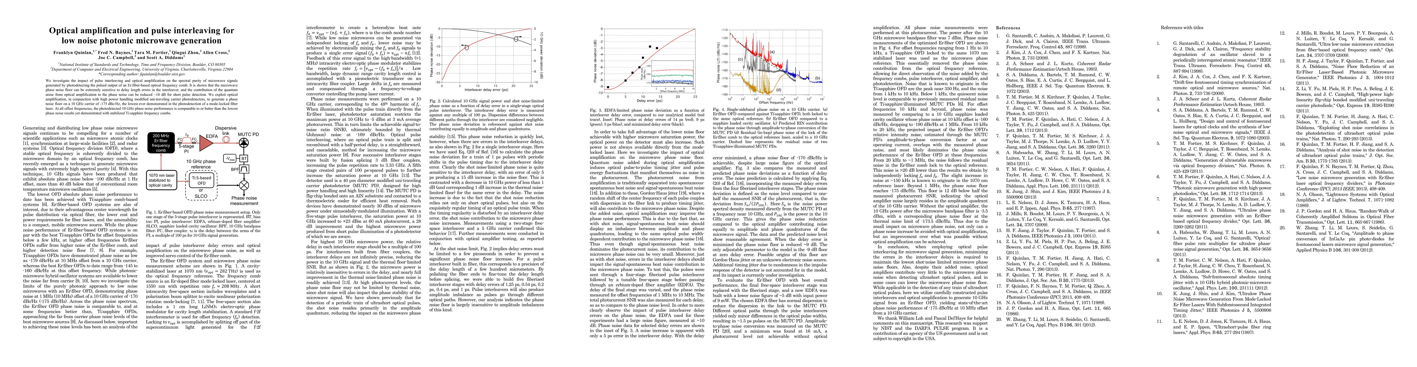 The paper presents a novel approach combining optical pulse interleaving and optical amplification to achieve unprecedented low phase noise floors in photonic microwave generation.