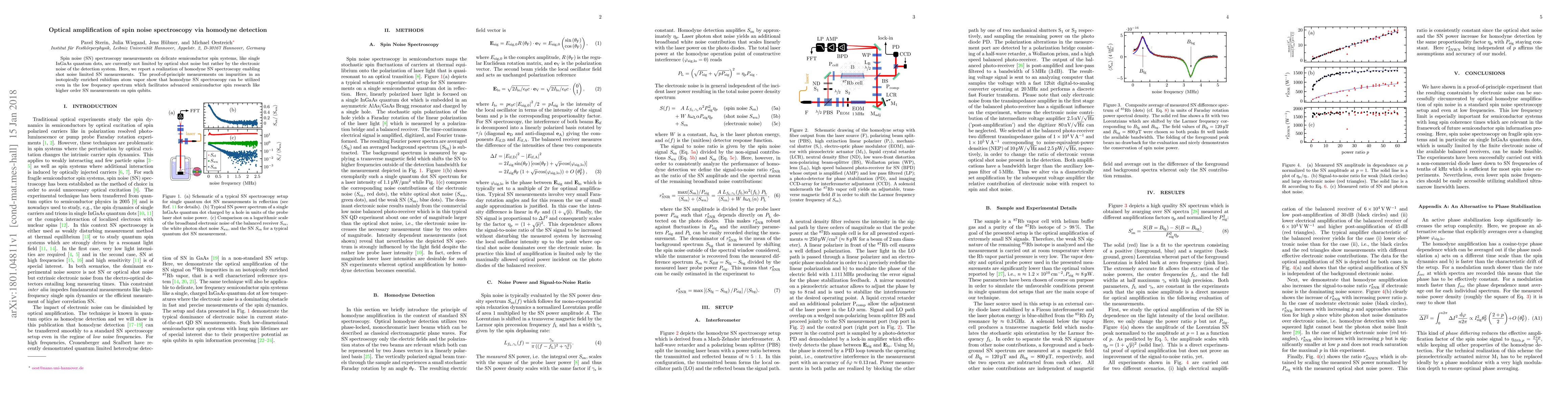 This paper presents a method for optical amplification of spin noise spectroscopy using homodyne detection, achieving shot noise limited measurements in semiconductor spin systems. The technique is demonstrated through measurements on rubidium impurities, indicating its potential for advanced research on spin qubits.