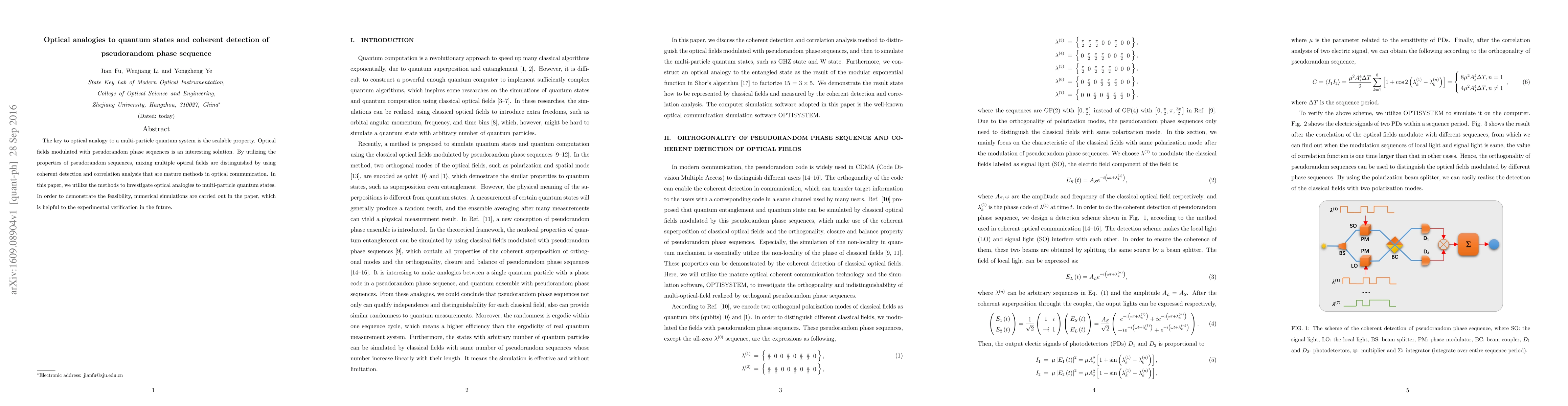 This paper explores the optical analogy to multi-particle quantum systems using scalable pseudorandom phase sequences. It employs coherent detection and correlation analysis to distinguish mixed optical fields, supported by numerical simulations to demonstrate feasibility for future experimental verification.