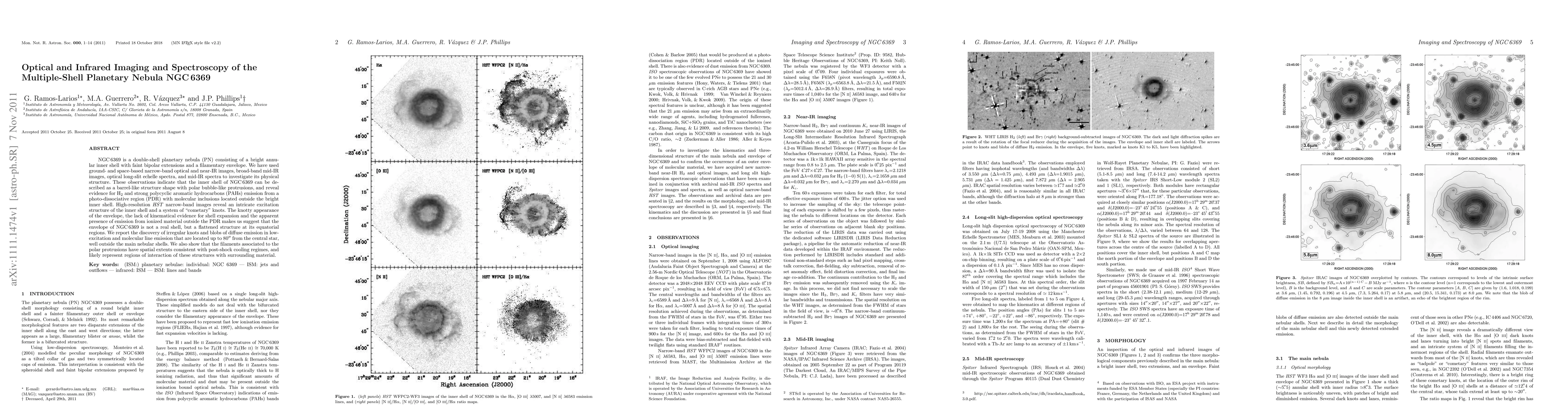 NGC 6369 is a double-shell planetary nebula (PN) consisting of a bright annular inner shell with faint bipolar extensions and a filamentary envelope. We have used ground- and space-based narrow-band optical and near-IR images, broad-band mid-IR images, optical long-slit echelle spectra, and mid-IR spectra to investigate its physical structure. These observations indicate that the inner shell of NGC 6369 can be described as a barrel-like structure shape with polar bubble-like protrusions, and reveal evidence for H2 and strong polycyclic aromatic hydrocarbons (PAHs) emission from a photo-dissociative region (PDR) with molecular inclusions located outside the bright inner shell. High-resolution HST narrow-band images reveal an intricate excitation structure of the inner shell and a system of "cometary" knots. The knotty appearance of the envelope, the lack of kinematical evidence for shell expansion and the apparent presence of emission from ionized material outside the PDR makes us suggest that the envelope of NGC 6369 is not a real shell, but a flattened structure at its equatorial regions. We report the discovery of irregular knots and blobs of diffuse emission in low-excitation and molecular line emission that are located up to 80" from the central star, well outside the main nebular shells. We also show that the filaments associated to the polar protrusions have spatial extents consistent with post-shock cooling regimes, and likely represent regions of interaction of these structures with surrounding material.