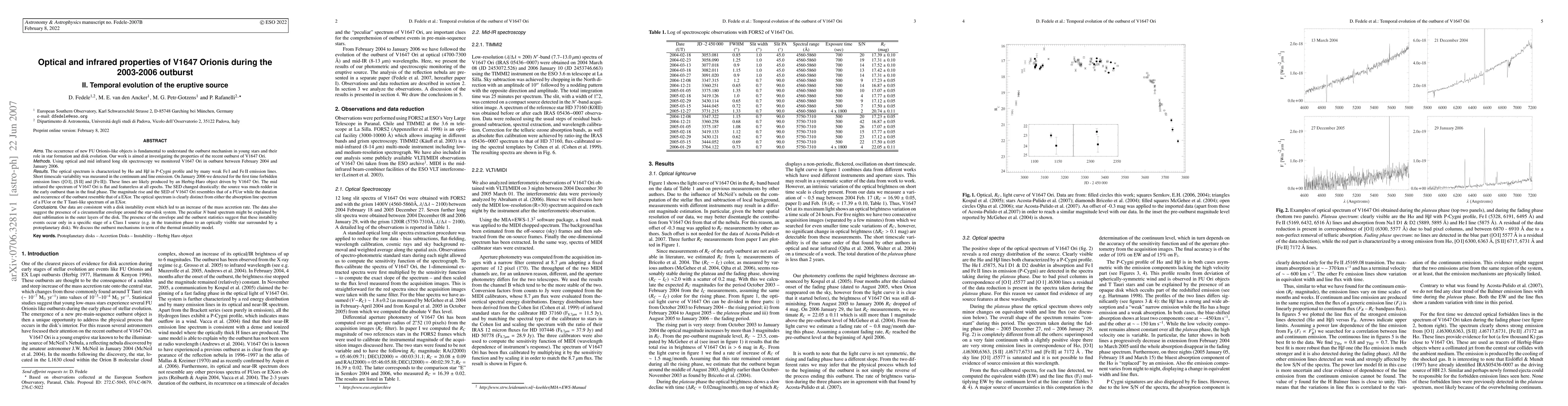The occurrence of new FU Orionis-like objects is fundamental to understand the outburst mechanism in young stars and their role in star formation and disk evolution. Our work is aimed at investigating the properties of the recent outburst of V1647 Ori. Using optical and mid infrared long slit spectroscopy we monitored V1647 Ori in outburst between February 2004 and January 2006. The optical spectrum is characterized by Halpha and Hbeta in P-Cygni profile and by many weak FeI and FeII emission lines. Short timescale variability was measured in the continuum and line emission. On January 2006 we detected for the first time forbidden emission lines ([OI], [SII] and [FeII]). These lines are likely produced by an Herbig-Haro object driven by V1647 Ori. The mid infrared the spectrum of V1647 Ori is flat and featureless at all epochs. The SED changed drastically: the source was much redder in the early outburst than in the final phase. The magnitude rise and the SED of V1647 Ori resembles that of a FUor while the duration and recurrence of the outburst resemble that of a EXor. The optical spectrum is clearly distinct from either the absorption line spectrum of a FUor or the T Tauri-like spectrum of an EXor. Our data are consistent with a disk instability event which led to an increase of the mass accretion rate. The data also suggest the presence of a circumstellar envelope around the star+disk system. The peculiar N band spectrum might be explained by dust sublimation in the outer layers of the disk. The presence of the envelope and the outburst statistics suggest that these instability events occur only in a specific stage of a Class I source (e.g. in the transition phase to an optically visible star surrounded by a protoplanetary disk). We discuss the outburst mechanisms in term of the thermal instability model.