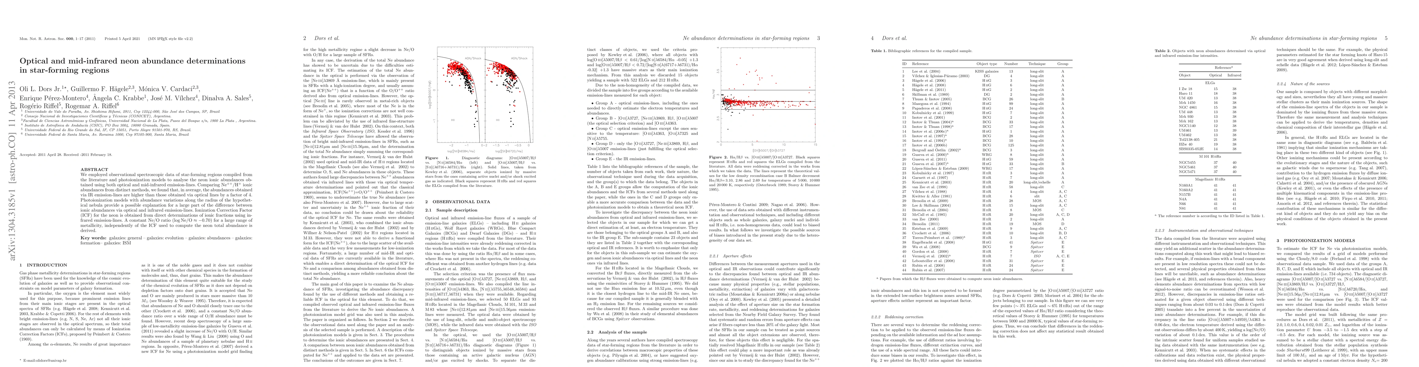 We employed observational spectroscopic data of star-forming regions compiled from the literature and photoionization models to analyse the neon ionic abundances obtained using both optical and mid-infrared emission-lines. Comparing Ne++/H+ ionic abundances from distinct methods, we found that, in average, the abundances obtained via IR emission-lines are higher than those obtained via optical lines by a factor of 4. Photoionization models with abundance variations along the radius of the hypothetical nebula provide a possible explanation for a large part of the difference between ionic abundances via optical and infrared emission-lines. Ionization Correction Factor (ICF) for the neon is obtained from direct determinations of ionic fractions using infrared emission-lines. A constant Ne/O ratio (logNe/O \approx -0.70) for a large range of metallicity, independently of the ICF used to compute the neon total abundance is derived.