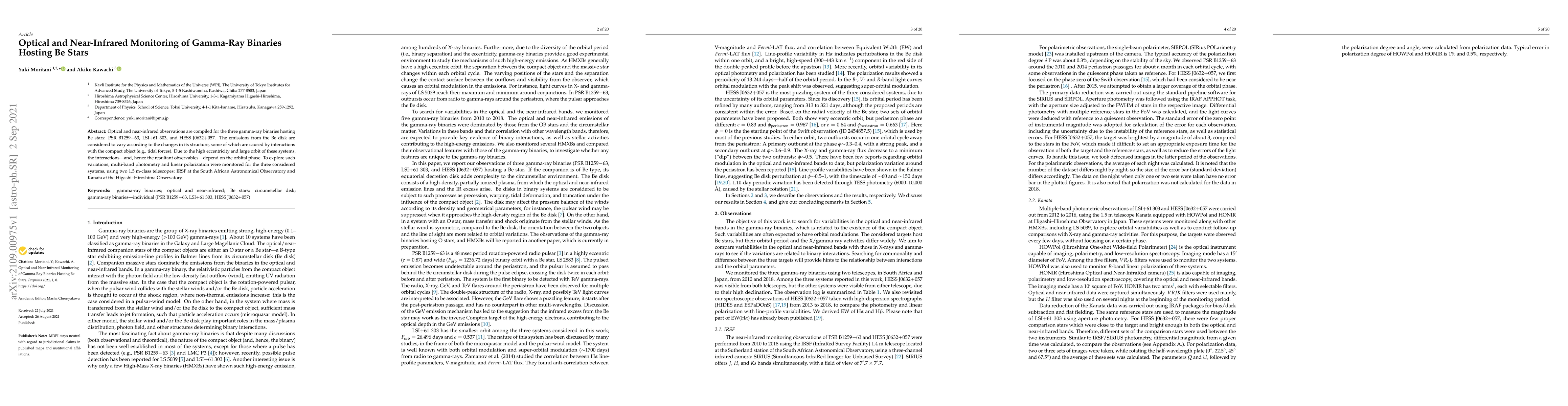 Researchers monitored three gamma-ray binaries hosting Be stars using optical and near-infrared observations to study variations in their disk emissions due to interactions with compact objects.