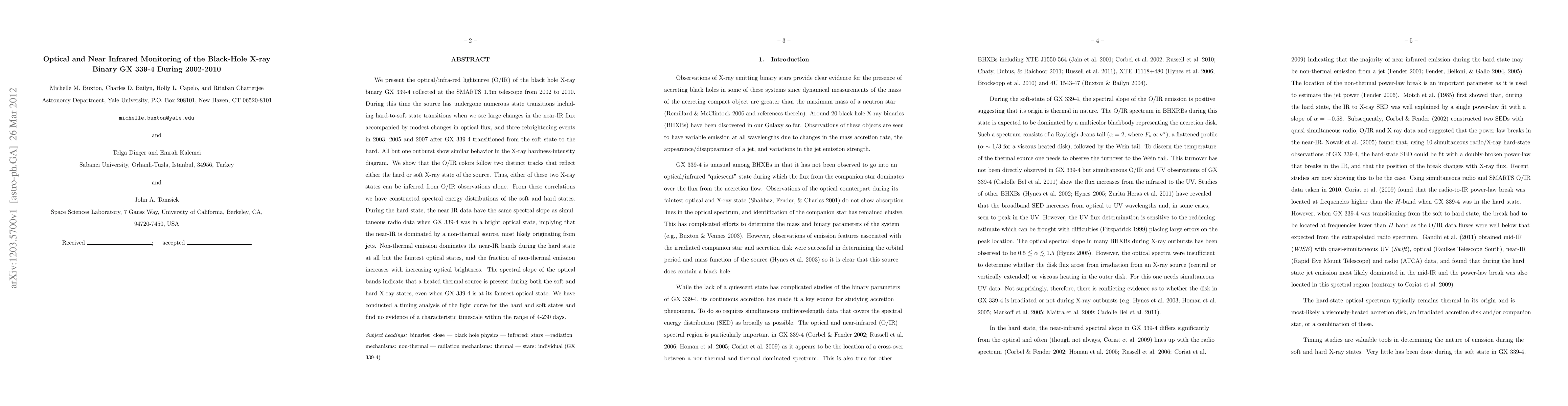This study monitors the optical and near-infrared lightcurve of the black hole X-ray binary GX 339-4 from 2002 to 2010, revealing significant state transitions and rebrightening events. The O/IR colors correlate with the hard or soft X-ray states, indicating non-thermal emission dominance in the near-IR during the hard state, while thermal sources are present in both states.