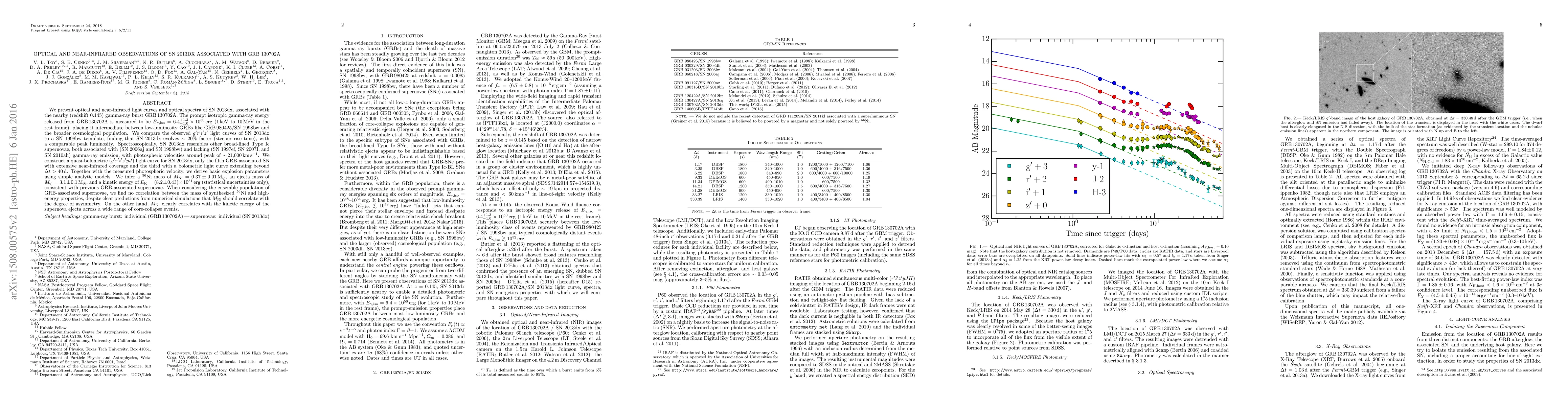 This study analyzes the optical and near-infrared observations of SN 2013dx, a gamma-ray burst-associated supernova, finding it evolves faster than similar SNe with comparable peak luminosity.