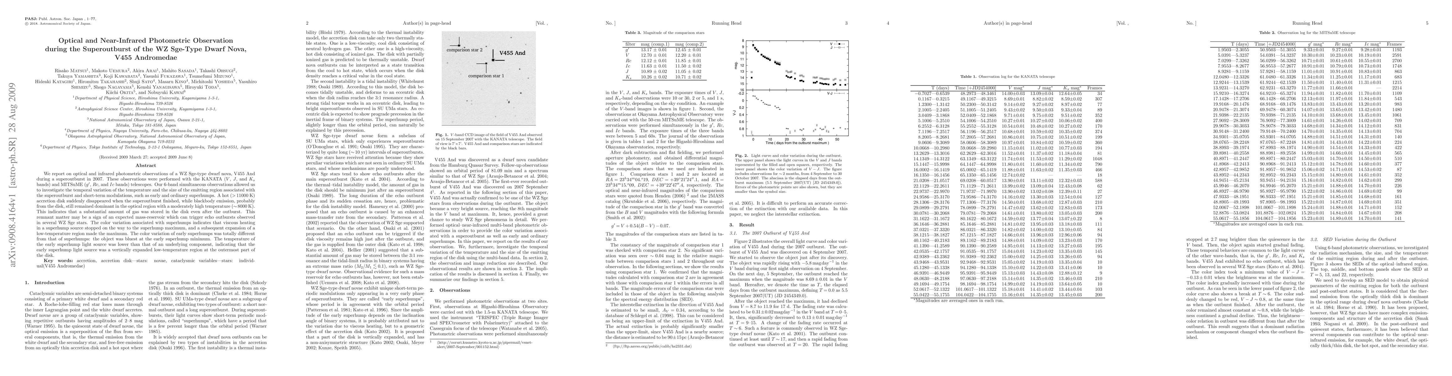 This study reports on optical and near-infrared observations of the WZ Sge-type dwarf nova V455 Andromedae during its 2007 superoutburst. The findings reveal a hot accretion disk that disappeared post-outburst, with residual gas indicating a potential mass-reservoir for future echo outbursts.