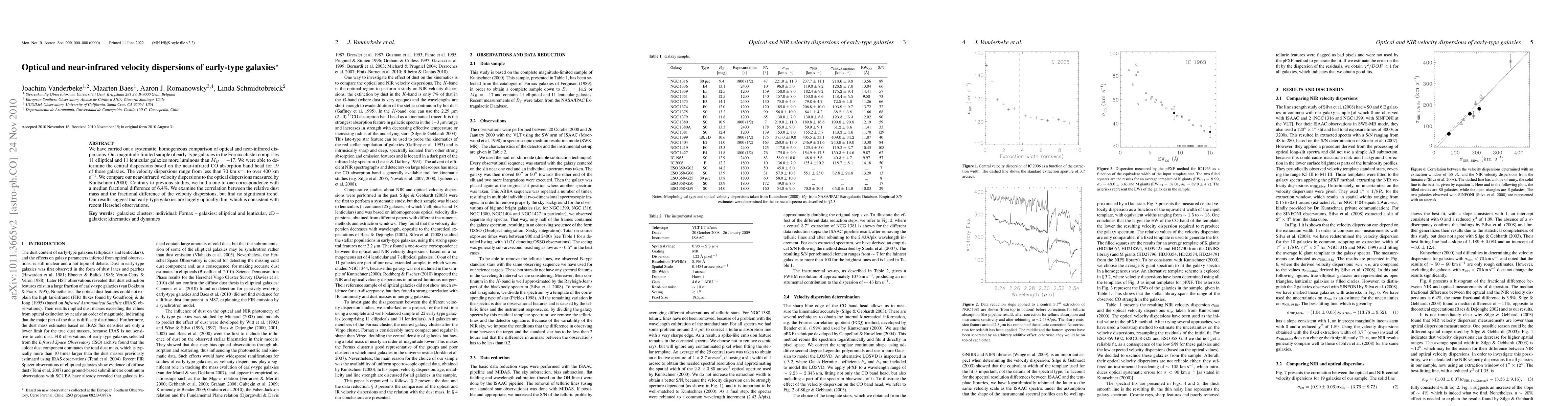 We have carried out a systematic, homogeneous comparison of optical and near-infrared dispersions. Our magnitude-limited sample of early-type galaxies in the Fornax cluster comprises 11 elliptical and 11 lenticular galaxies more luminous than MB = -17. We were able to determine the central dispersions based on the near-infrared CO absorption band head for 19 of those galaxies. The velocity dispersions range from less than 70 km/s to over 400 km/s. We compare our near-infrared velocity dispersions to the optical dispersions measured by Kuntschner (2000). Contrary to previous studies, we find a one-to-one correspondence with a median fractional difference of 6.4%. We examine the correlation between the relative dust mass and the fractional difference of the velocity dispersions, but find no significant trend. Our results suggest that early-type galaxies are largely optically thin, which is consistent with recent Herschel observations.