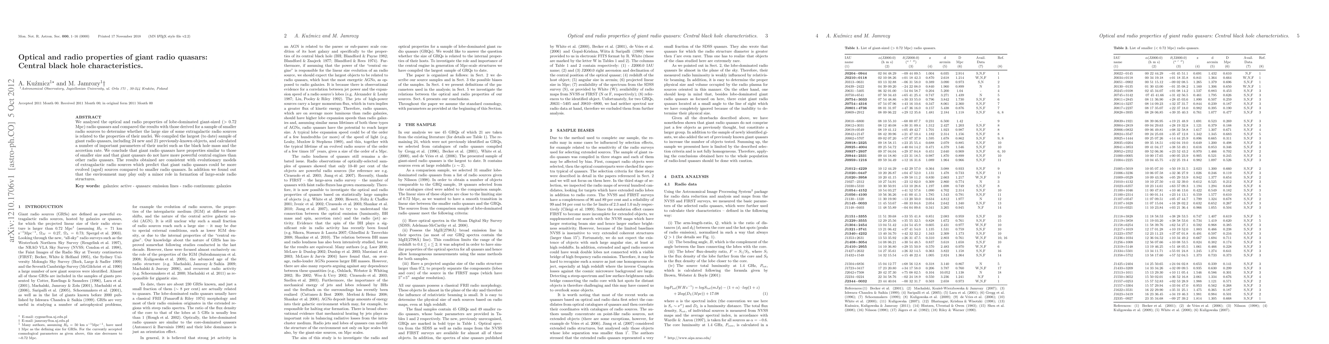 A study of giant radio quasars found that their central black hole properties are similar to smaller sources, contradicting the idea that larger quasars have more powerful engines. The research suggests that giant quasars may be more evolved sources with environmental influences playing a minor role in their formation.
