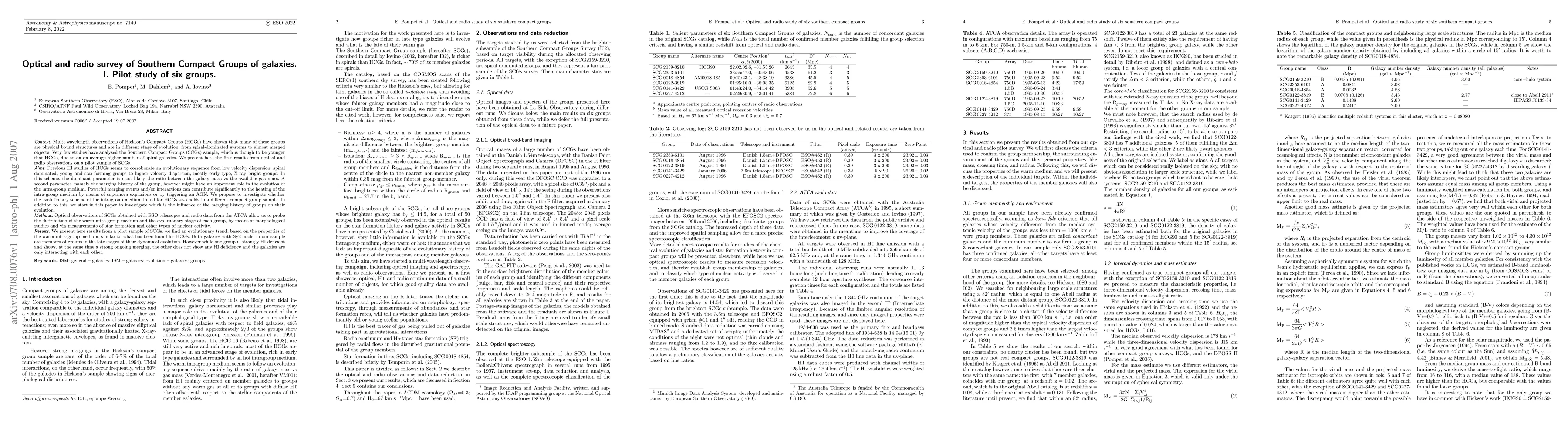 Multi-wavelength observations of Hickson's Compact Groups (HCGs) have shown that many of these groups are physical bound structures and are in different stage of evolution, from spiral-dominated systems to almost merged objects. Very few studies have analysed the Southern Compact Groups (SCGs) sample, which is though to be younger that HCGs, due to an on average higher number of spiral galaxies. We present here the first results from optical and radio observations on a pilot sample of SCGs.