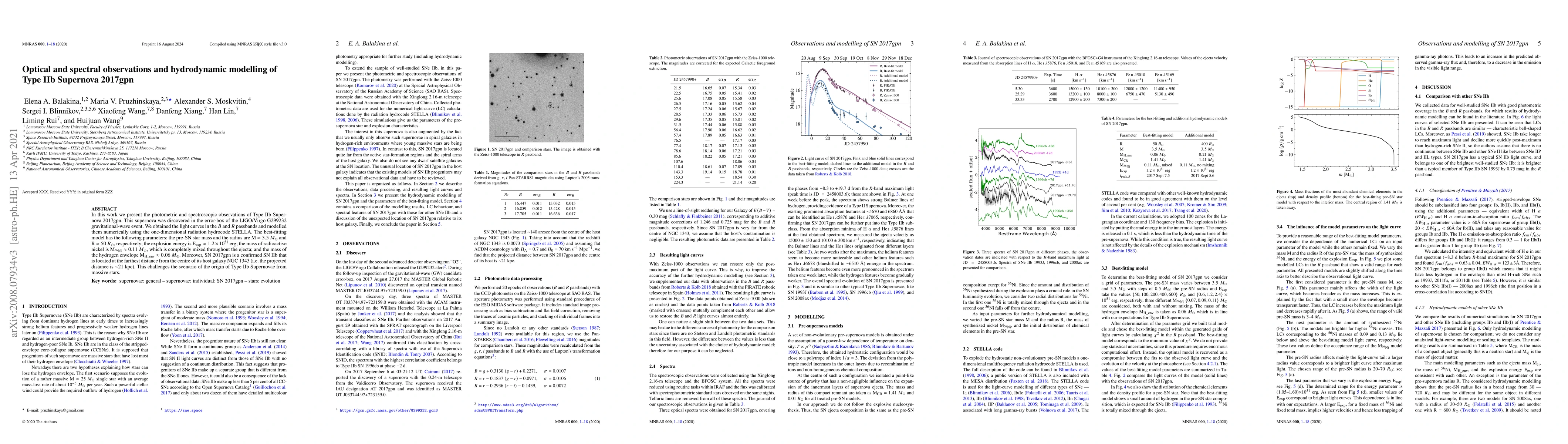 In this work we present the photometric and spectroscopic observations of Type IIb Supernova 2017gpn. This supernova was discovered in the error-box of LIGO/Virgo G299232 gravitational-wave event. We obtained the light curves in B and R passbands and modelled them numerically using the one-dimensional radiation hydrocode STELLA. The best-fit model has the following parameters: the pre-SN star mass and the radius are 3.5 Msun and 50 Rsun, respectively; the explosion energy is Eexp = 1.2 * 10^51 erg; the mass of radioactive nickel is M56Ni =0.11 Msun, which is totally mixed through the ejecta, the mass of the hydrogen envelope 0.06 Msun. Moreover, SN 2017gpn is a confirmed SN IIb that is located at the farthest distance from the center of its host galaxy NGC 1343 (i.e. the projected distance is about 21 kpc). This challenges the scenario of the origin of Type IIb Supernovae from massive stars.
