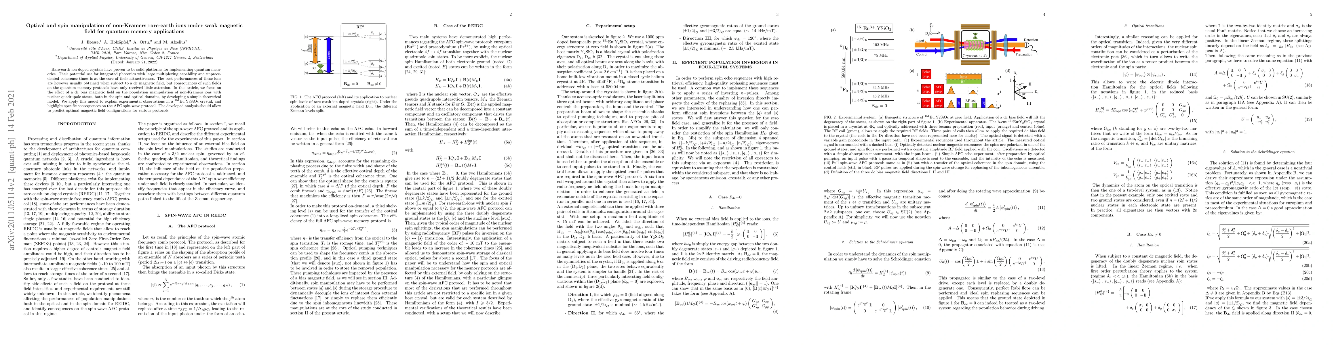 This research develops a theoretical model to analyze the impact of a dc magnetic field on non-Kramers rare-earth ions in quantum memory applications, focusing on population manipulation in both spin and optical domains. The model explains experimental results in ${}^{151}$Eu:Y$_2$SiO$_5$ crystal, revealing specific consequences for AFC spin-wave protocol, aiding in predicting optimal magnetic field configurations for various quantum memory protocols.