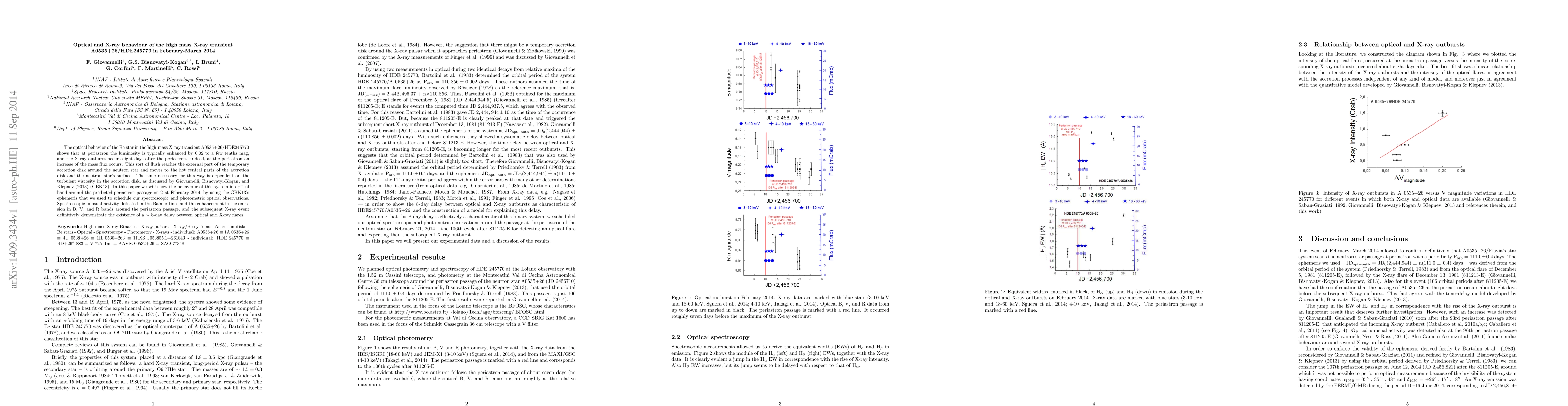 The high-mass X-ray transient A0535+26/HDE245770 shows an 8-day delay between optical and X-ray flares, with enhanced luminosity at periastron passage.