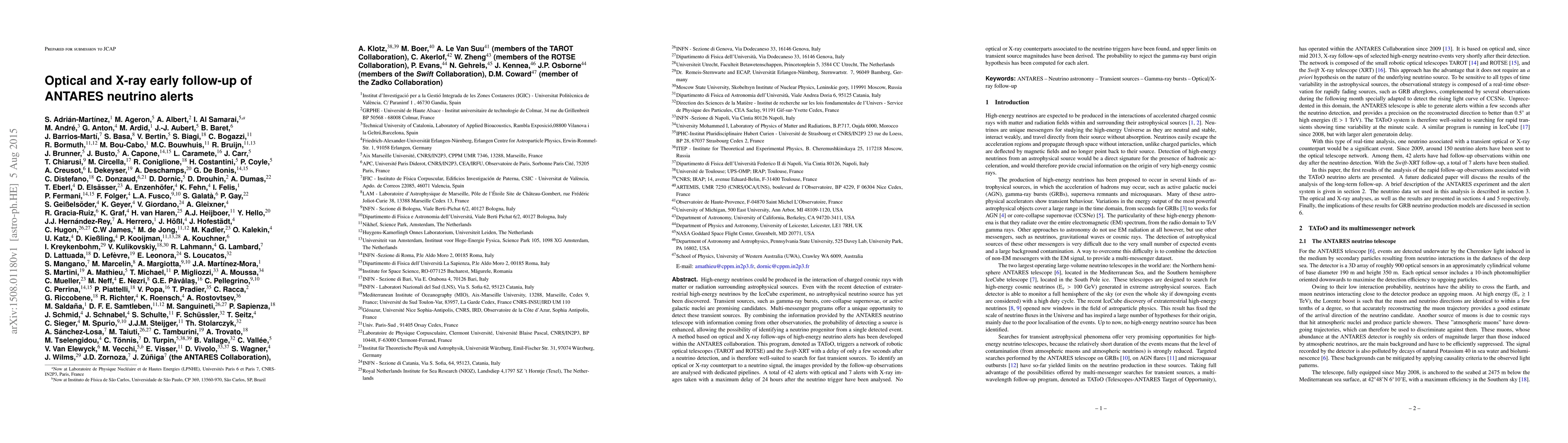 This paper details the TAToO program, which uses optical and X-ray follow-up observations to search for counterparts of high-energy neutrino alerts detected by the ANTARES telescope. Despite analyzing 42 optical and 7 X-ray alerts, no counterparts were found, leading to derived upper limits on transient source magnitudes and rejection of gamma-ray burst origins for the alerts.