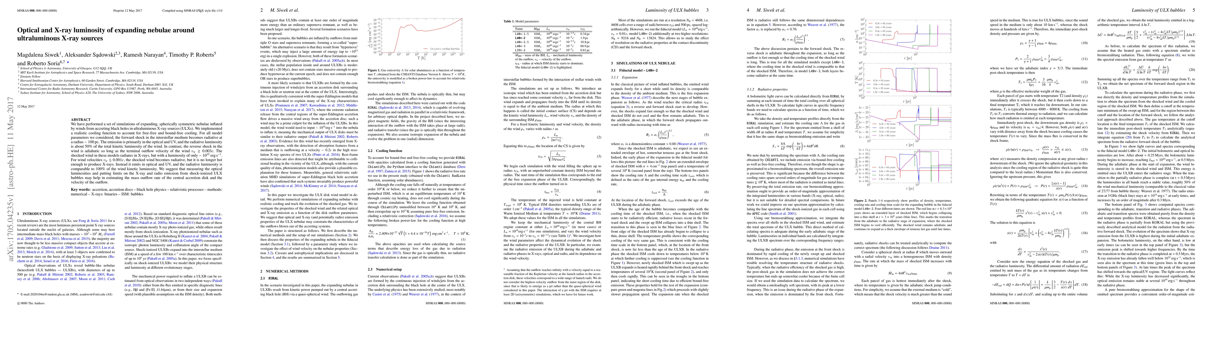 Simulations of expanding nebulae around ultraluminous X-ray sources show that most of their optical luminosity comes from the forward shock, while X-rays are produced only when the reverse shock is radiative, with a limited effect on mass outflow rate estimation.