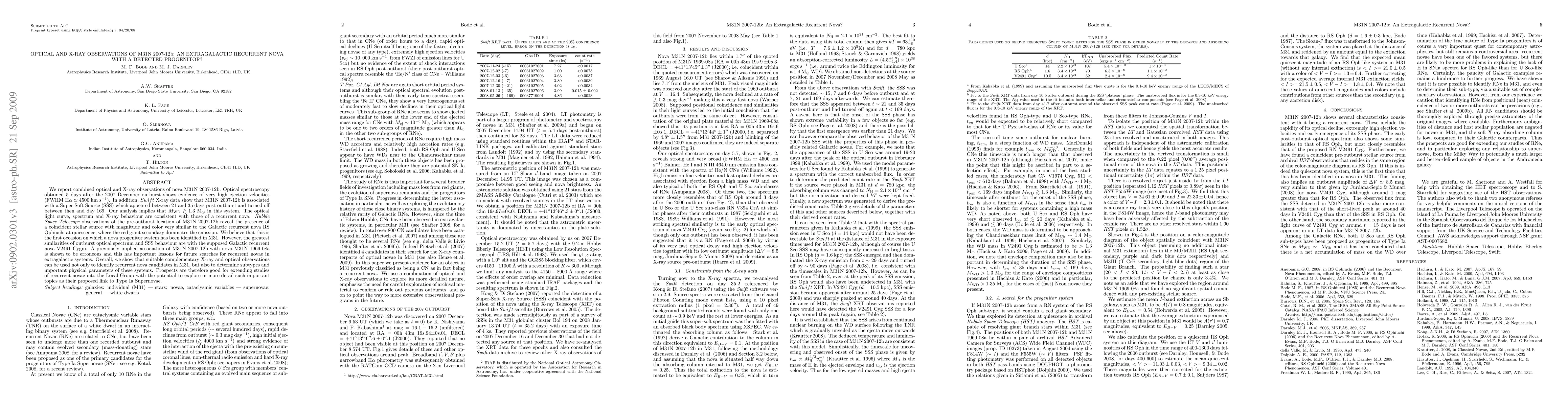 This paper reports on combined optical and X-ray observations of the extragalactic recurrent nova M31N 2007-12b, revealing high ejection velocities and a Super-Soft Source, and identifies its progenitor as a red giant similar to those in Galactic recurrent novae.