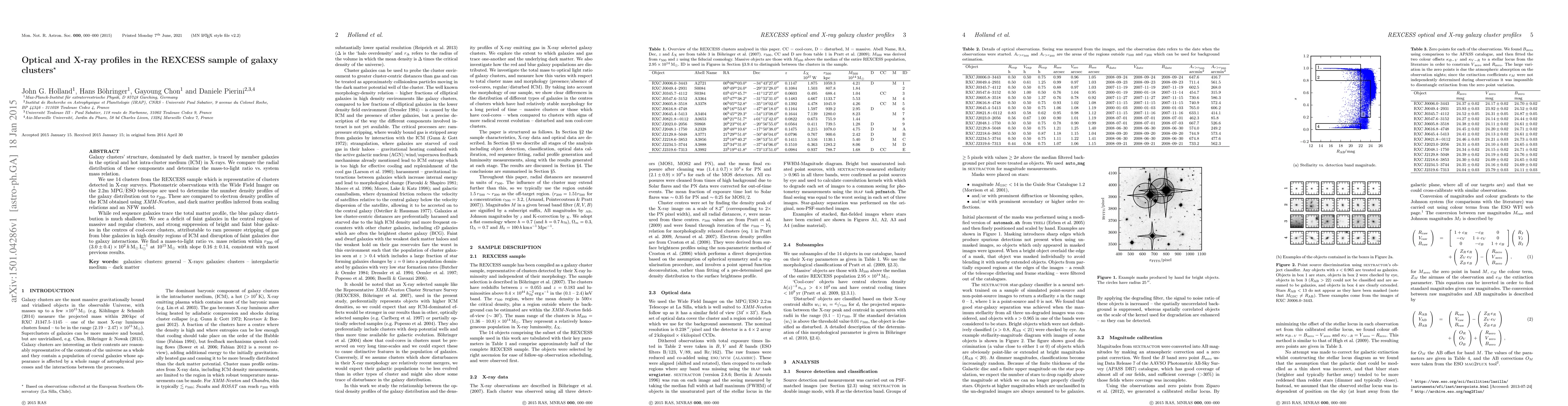 This study examines the optical and X-ray profiles of 14 galaxy clusters from the REXCESS sample, comparing the radial distribution of galaxies and the hot intra-cluster medium. The analysis reveals a mass-to-light ratio of $(3.0\pm0.4) \times 10^2\,h\,\mathrm{M}_{\odot}\,\mathrm{L}_{\odot}^{-1}$ at $10^{15}\,\mathrm{M}_{\odot}$, with a slope indicating a weak dependence on system mass.